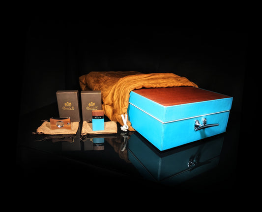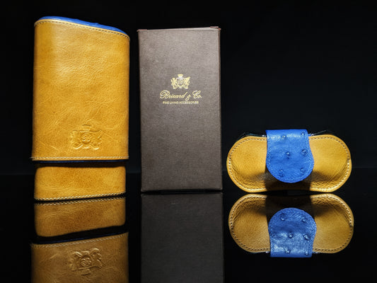 Brizard and Co Blue Ostrich and Camel Color Leather Case and V-Cutter