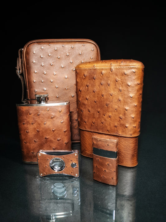 Brizard and Co Havana Traveler in Genuine Saddle Ostrich with Cutter and Lighter