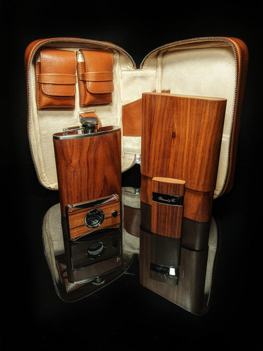 Brizard and Co Havana Traveler in Tan Leather with matching cutter and lighter NIB