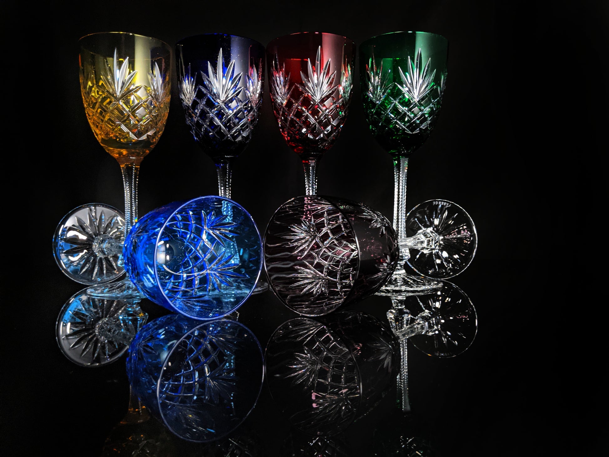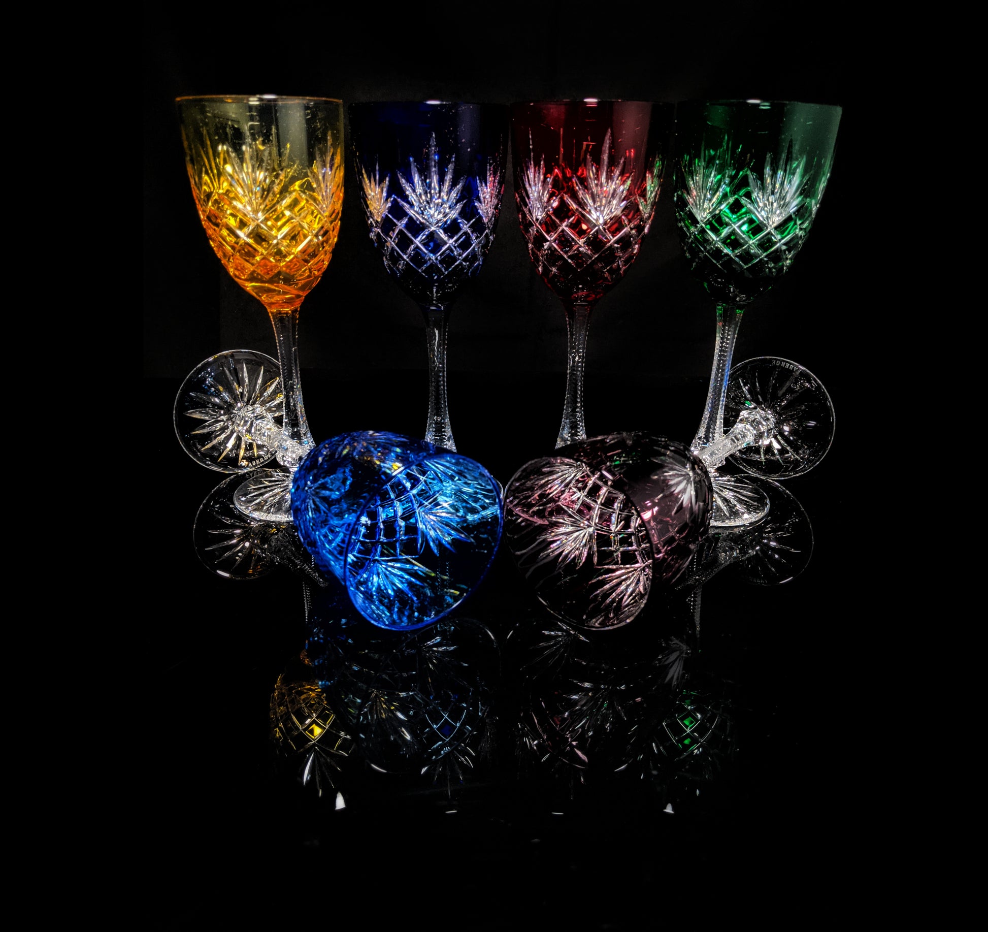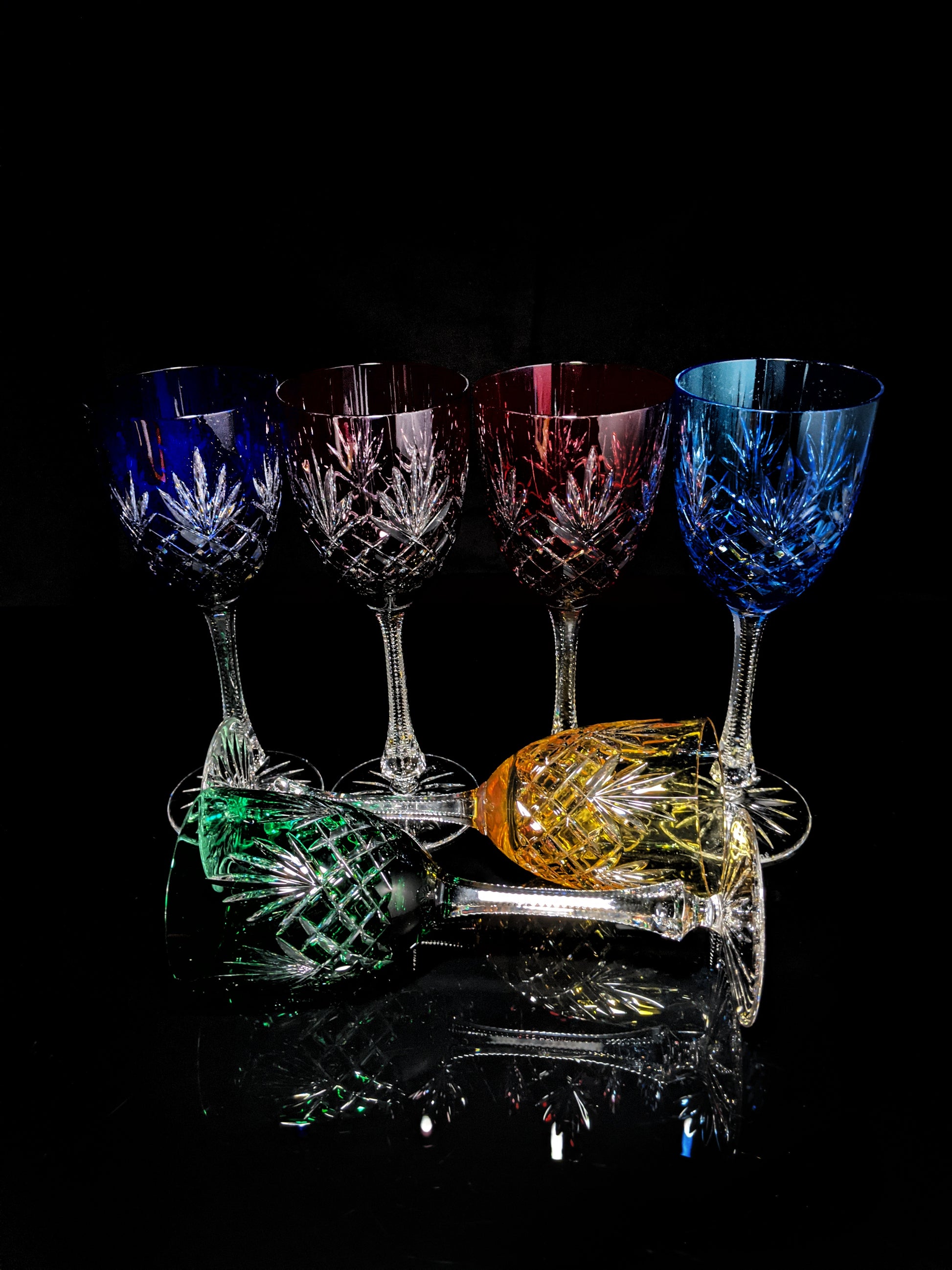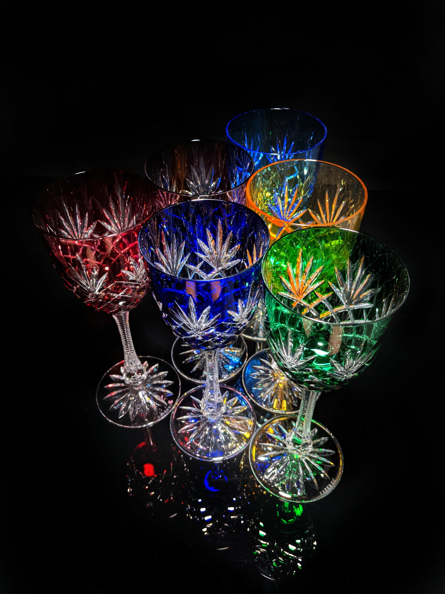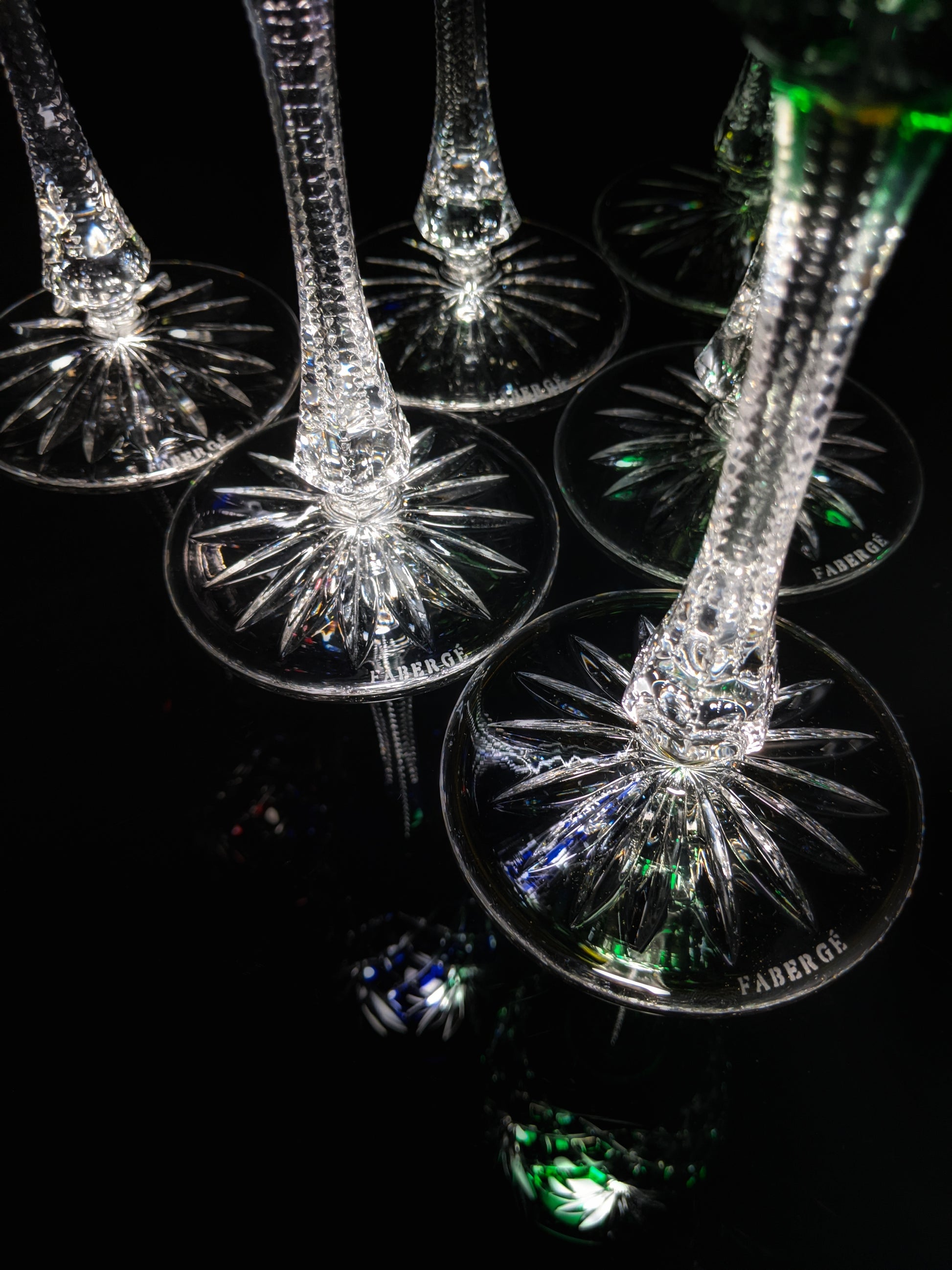 This is a new set of Faberge Odessa Multi colored Crystal Goblet Glasses . These glasses stand 8 7/8 " Tall with 3 1/4 " at rim . Has the Faberge name etched on base. Comes in the original Faberge blue box. We ship Worldwide fully insured. Signature required upon delivery. Thank you!