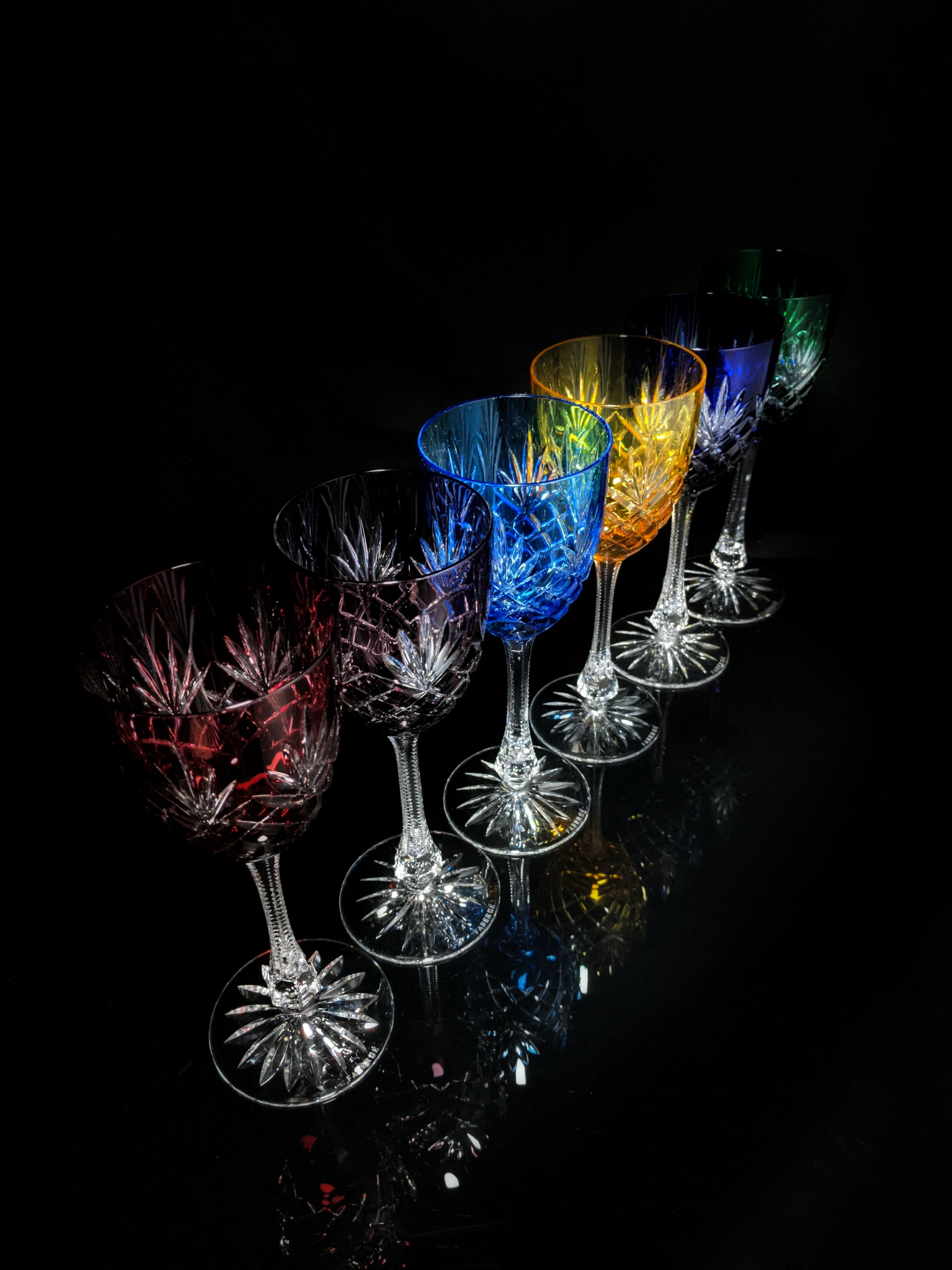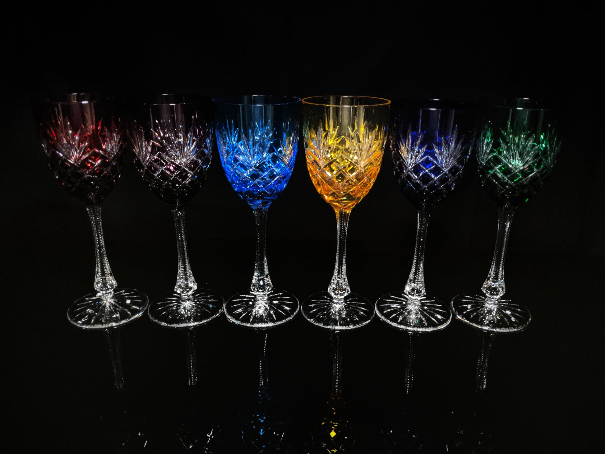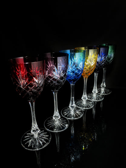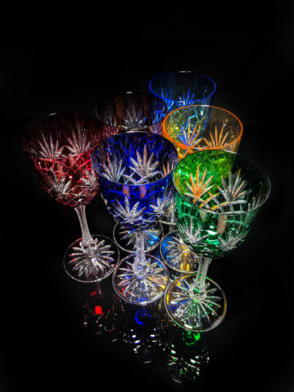 Faberge Odessa Crystal Colored Goblet Glasses set of 6 NIB