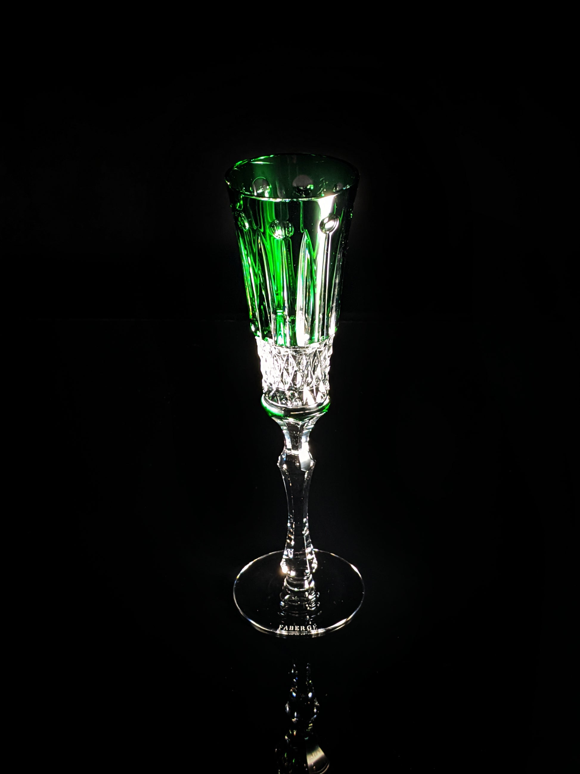 This is a new Faberge Xenia Green Cut to Clear Crystal Flute. Made in Slovenia. Etched Faberge on the base. Comes without the original box. Stands 9" tall. We ship Worldwide fully insured.