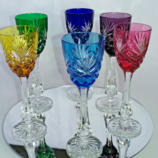 Faberge Odessa Colored Crystal Cordial Glasses Set of 6 in the original box
