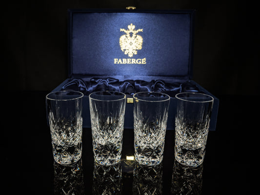Faberge Atelier Crystal Collection Highball Glasses set of 4 NIB 5 1/4" H x 2 7/8" W