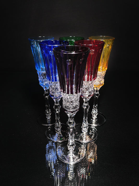 Faberge Colored Crystal Lausanne Hock Glasses. 8 1/2" H x 3 1/4" W