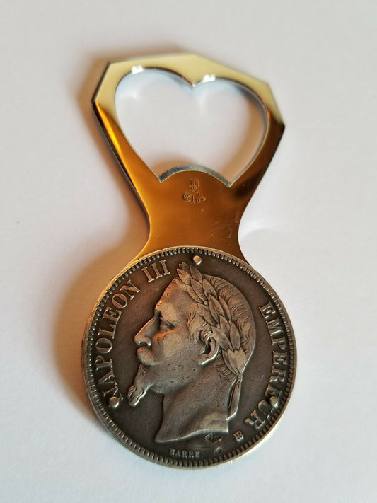 VINTAGE ELOI PERNET FRANCE 5 FRANCS 1868 NAPOLÉON III SILVER COIN BOTTLE OPENER