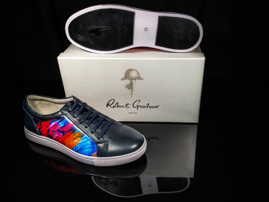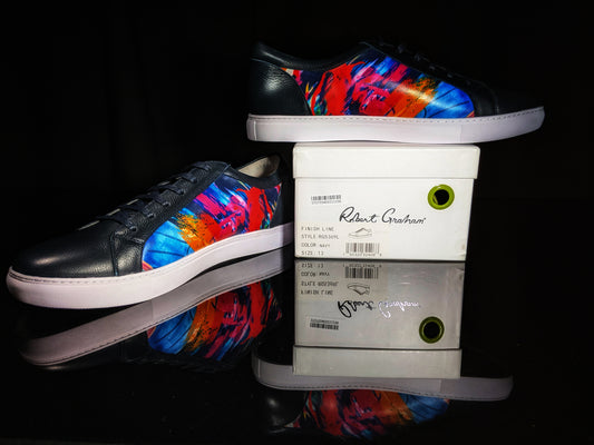 Robert Graham Finish Line Leather Printed Navy Multi Sneakers Size 13