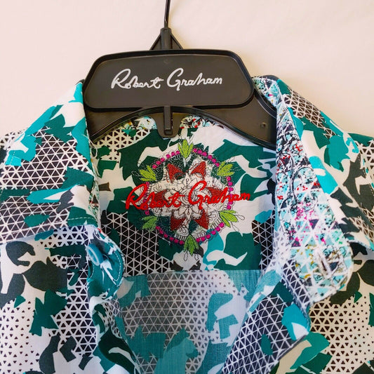 Robert Graham Shattered Sleeve Printed Sport Shirt Classic Fit medium