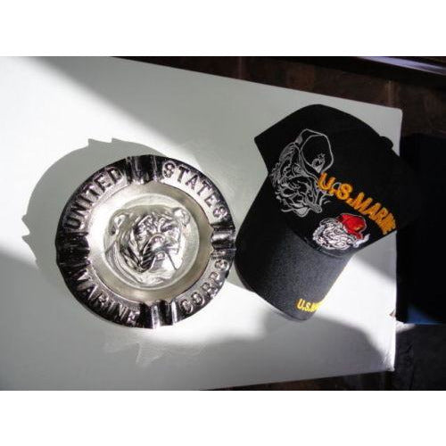 USMC Bulldog Ashtray & USMC Black Baseball Cap Combo