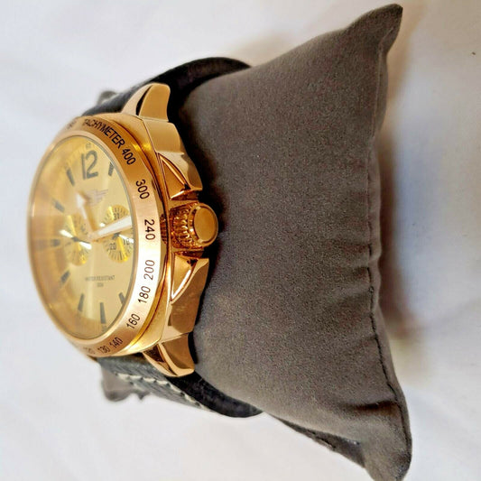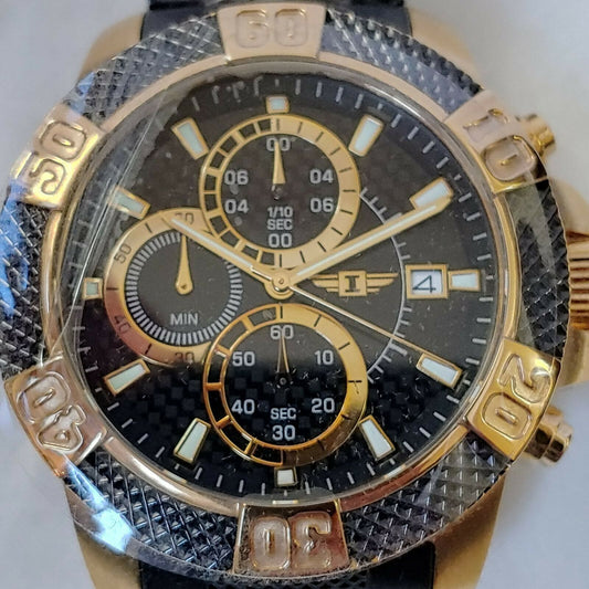 INVICTA I BY INVICTA WATCH | GOLD CASE w/BLACK LEATHER BAND | MODEL IBI43660-004