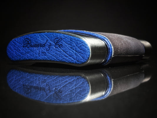 Brizard and Co. The 8 oz Flask -Full Grain Gray Leather and Blue Ostrich