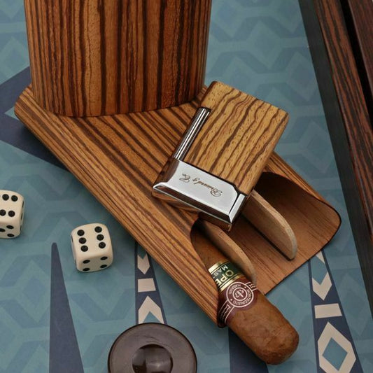 Brizard The "Show Band" 3 Cigar Case ,,Cutter and Lighter Combo - Zebrawood USA