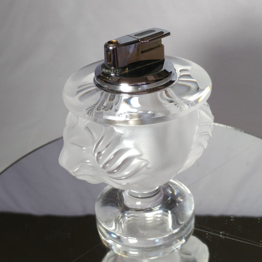 Lalique Crystal Tete De Lion Cigarette Lighter and Match Holder Set
