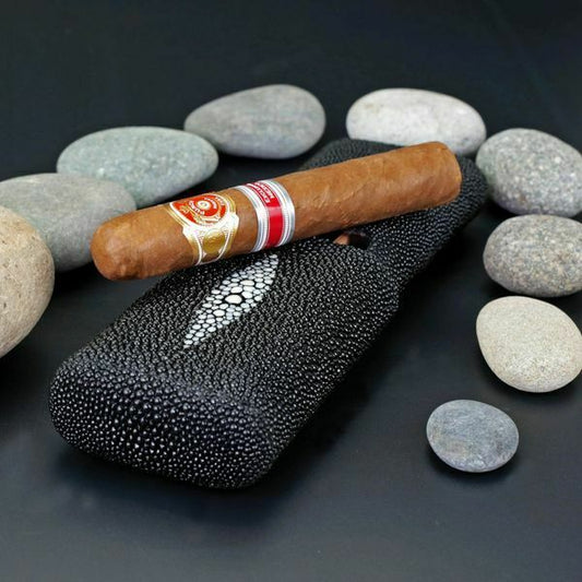 Brizard "Show Band" 3 Cigar Case, Cutter and Lighter Combo - Stingray Black USA