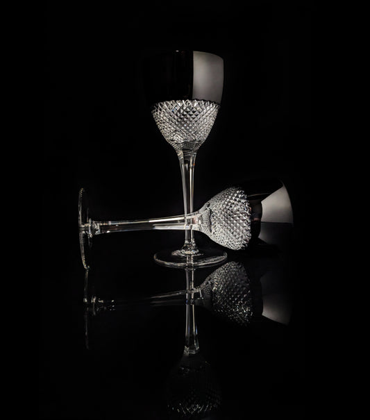 Faberge Firenze Black Crystal Wine Goblets NIB