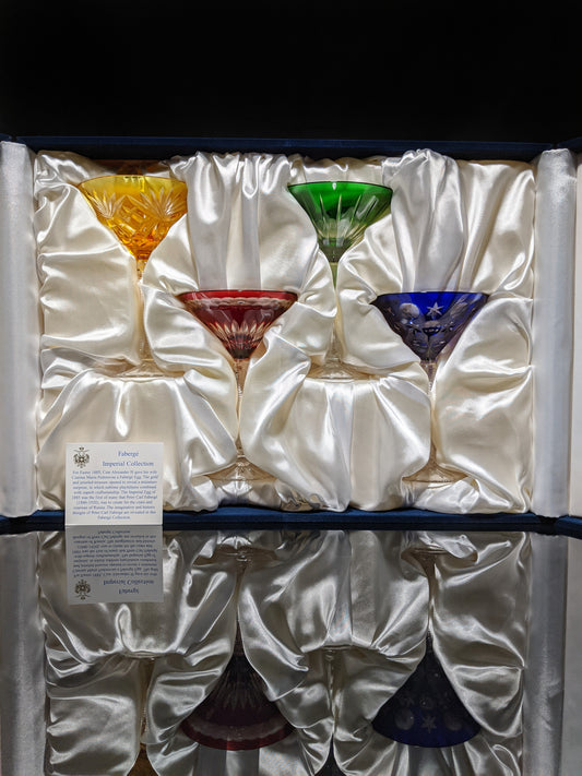 Faberge Crystal Martini Glasses Set Of 4 New In Presentation box