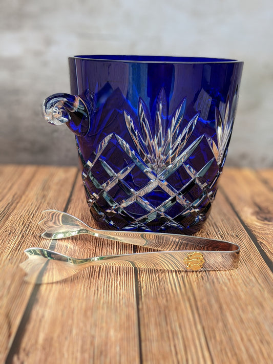 FABERGE ODESSA COBALT BLUE CASED CUT TO CLEAR CRYSTAL ICE BUCKET