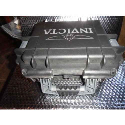 Invicta watch carrying case in black with grey handles holds 3 watches