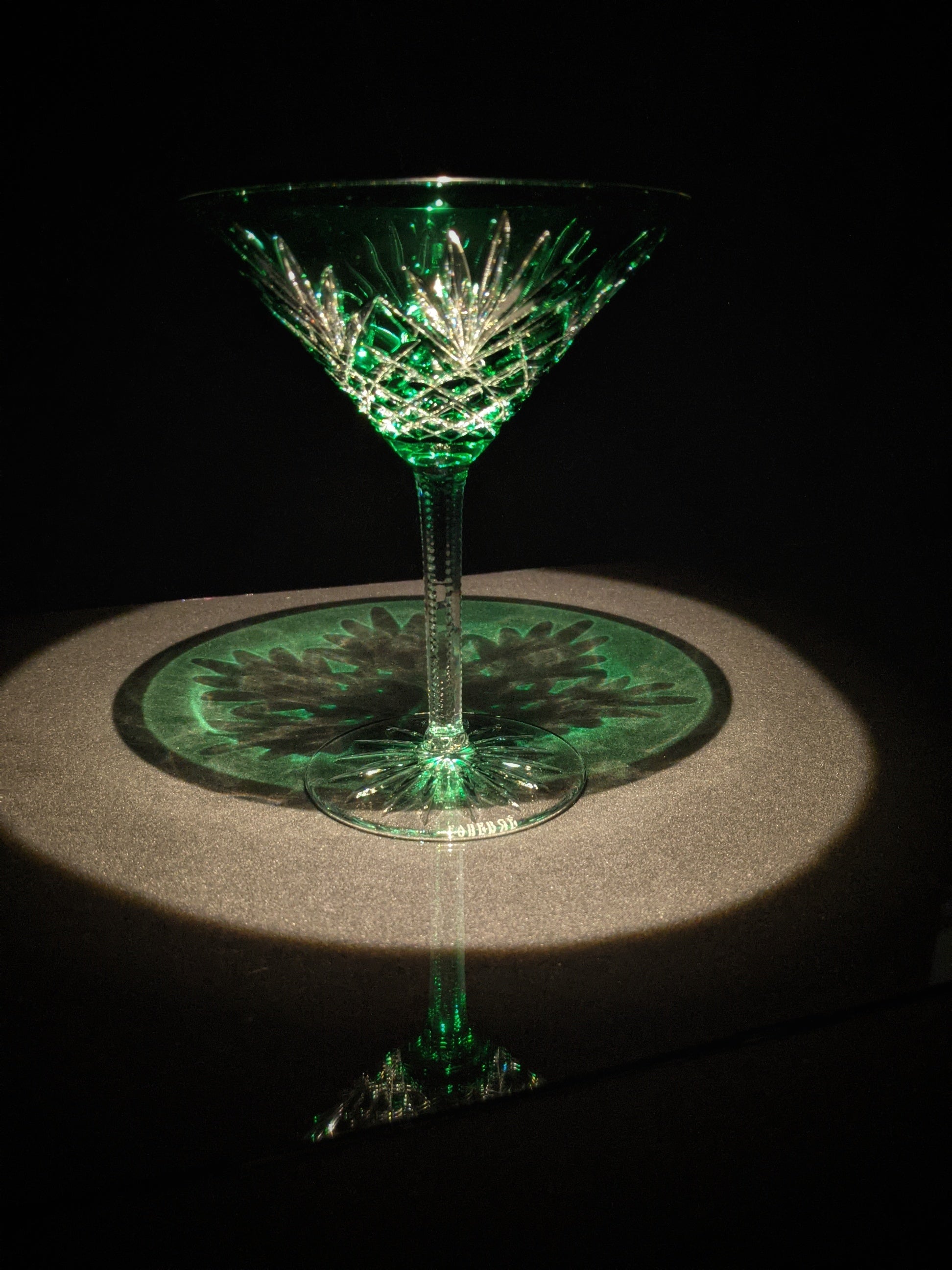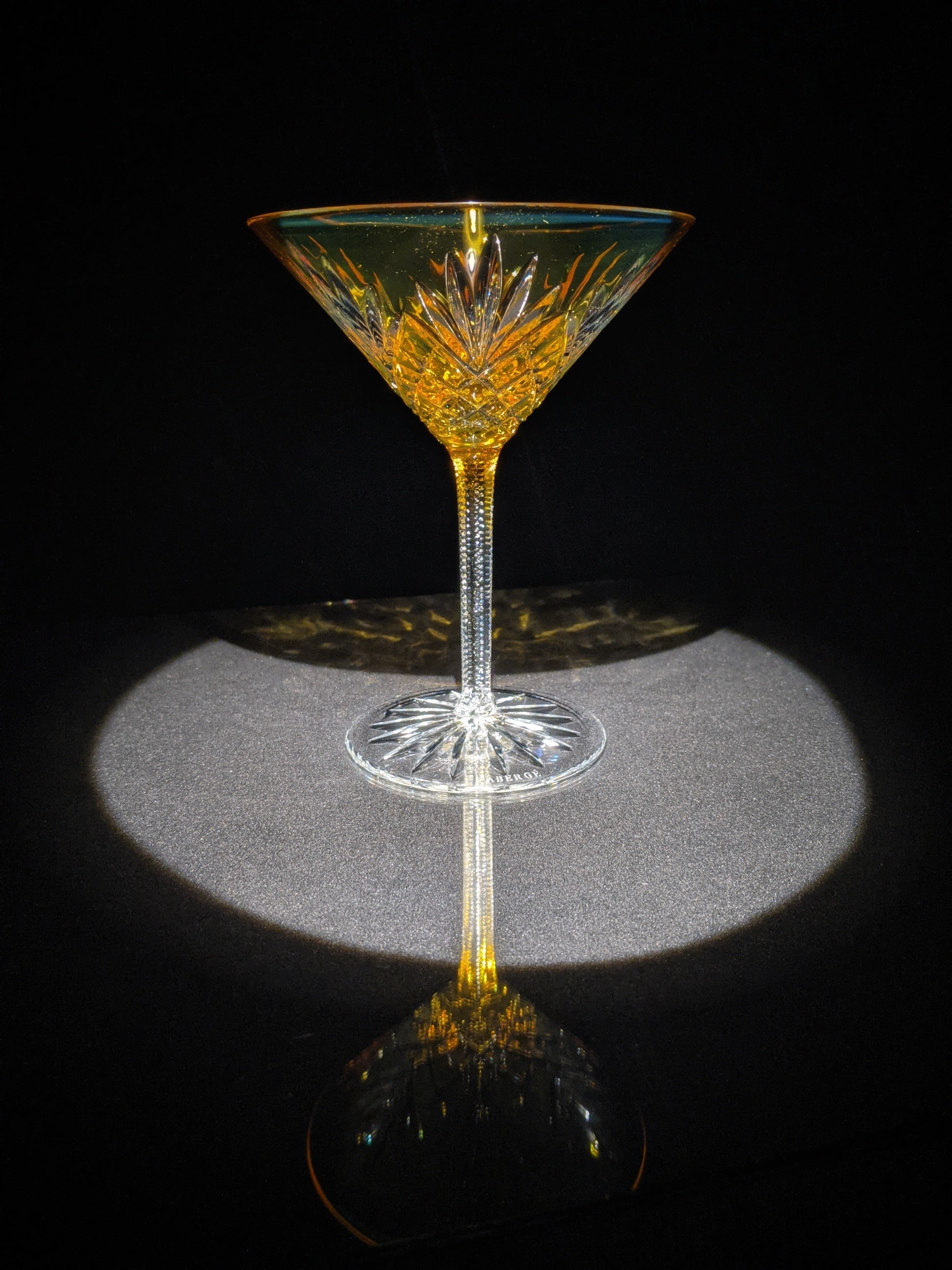 This is a set of 4 Faberge crystal Martini glasses. Made in Slovenia These come without the original presentation box. We ship worldwide fully insured. Signature is required upon delivery.