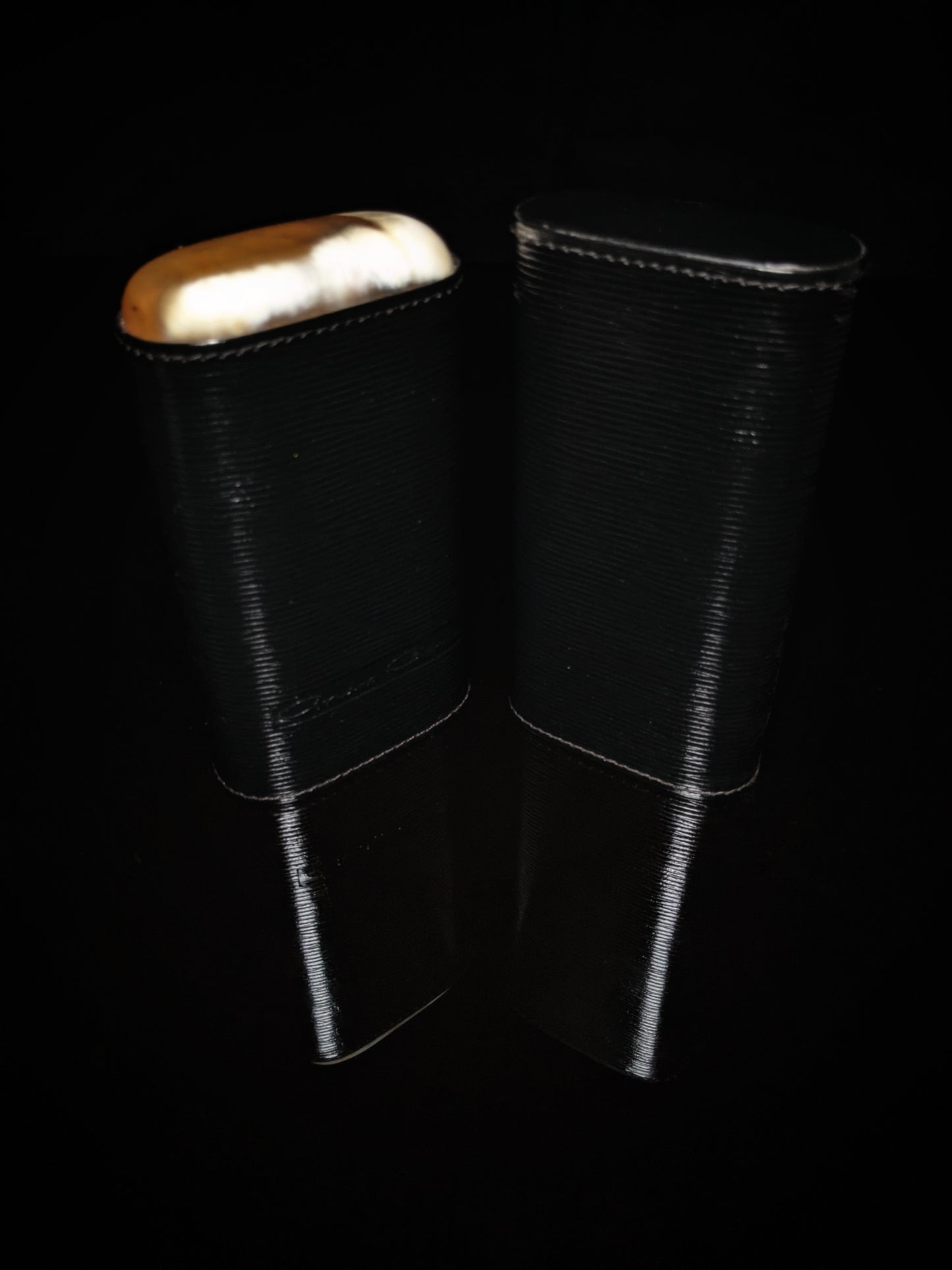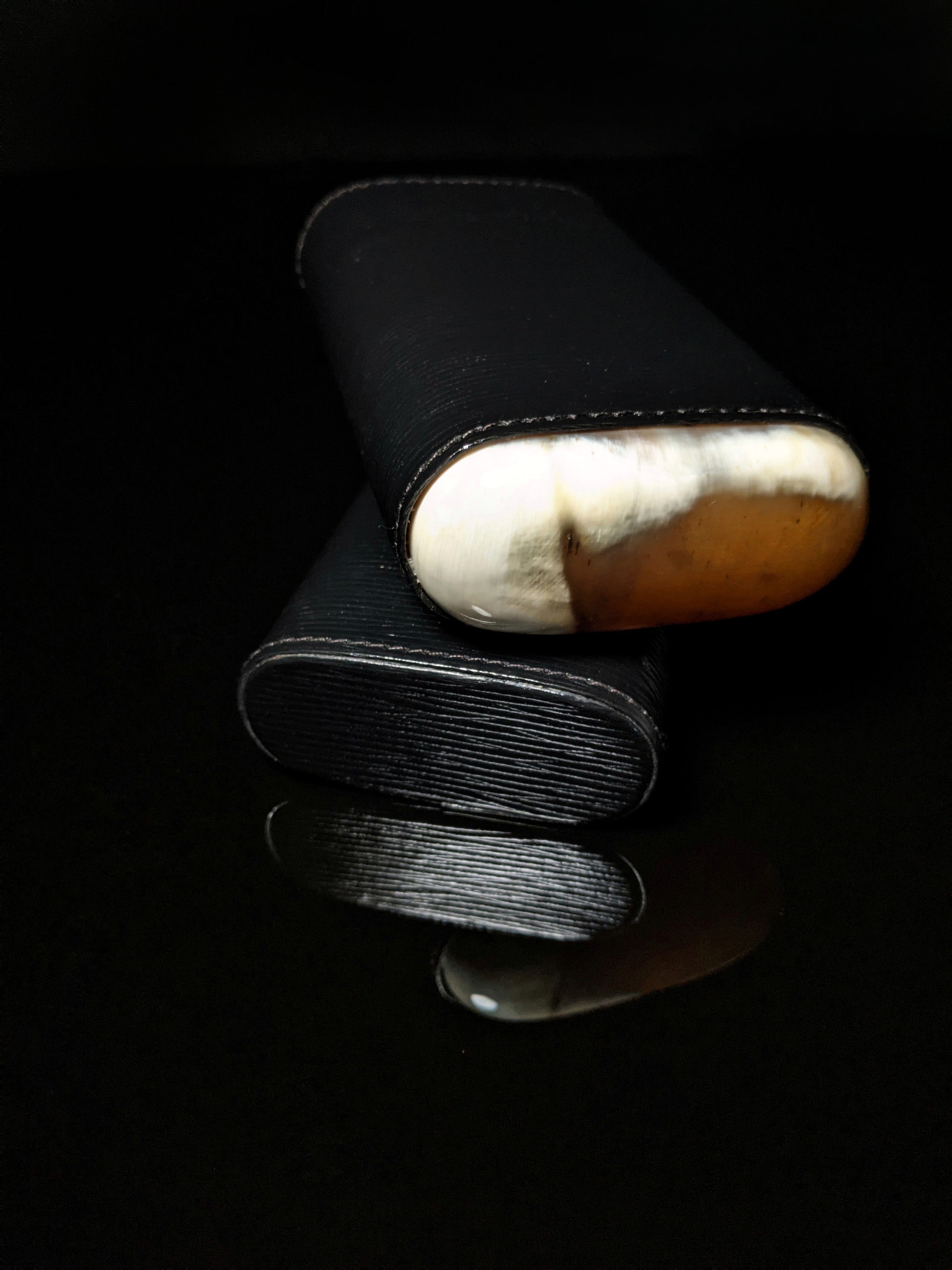 This is a new Andre Garica Black Leather with Horn adjustable cigar carrying case . Comes in the original box complete with bag and booklets. Made in India. We ship Worldwide fully insured.