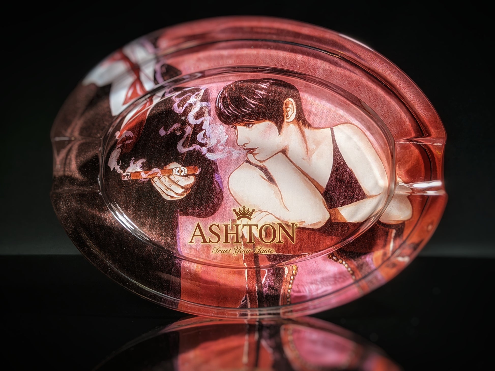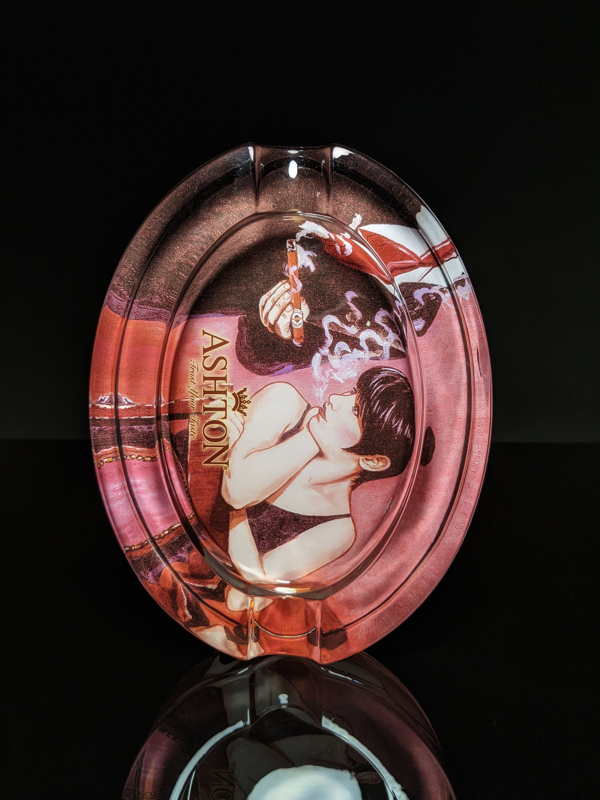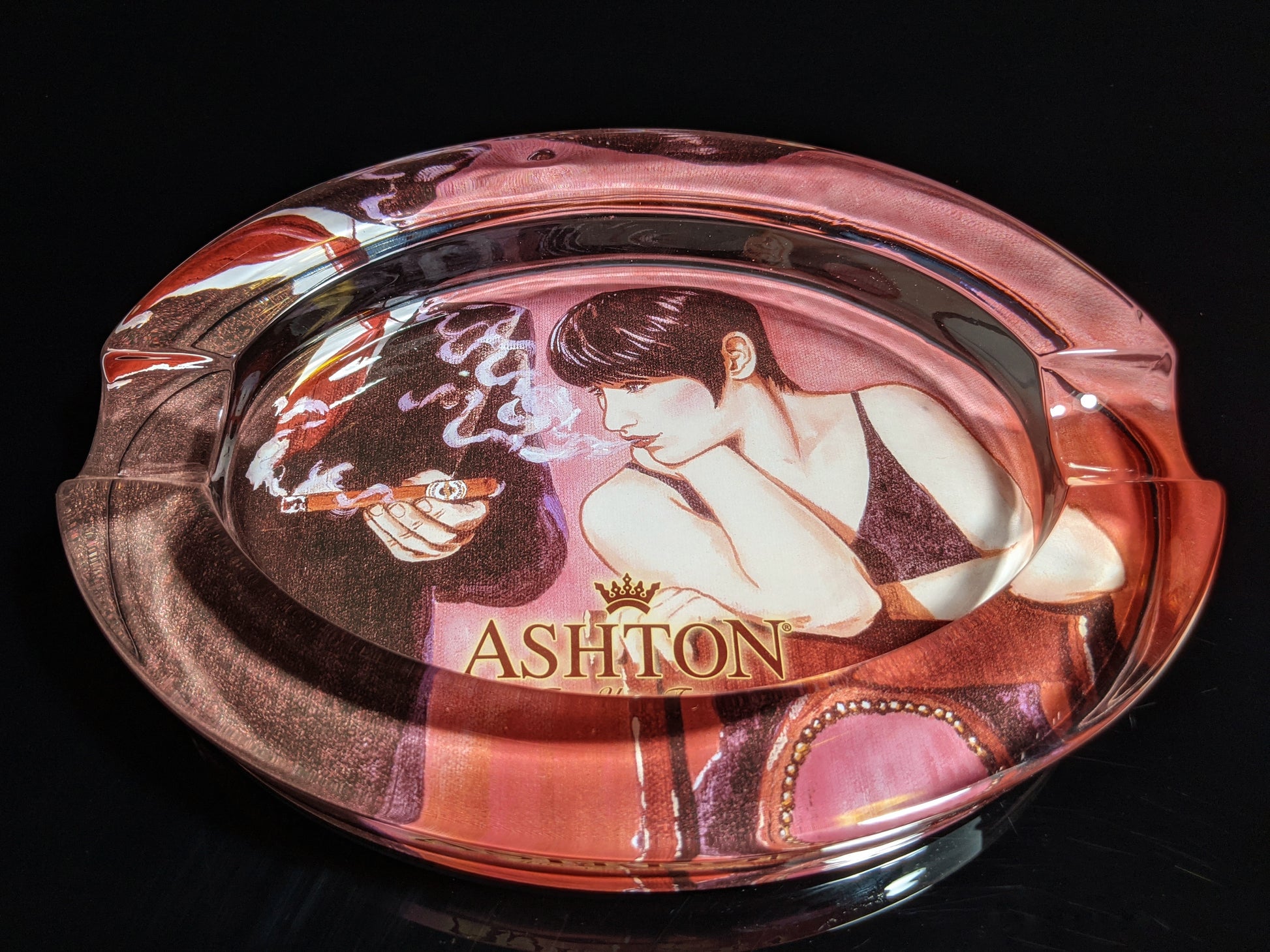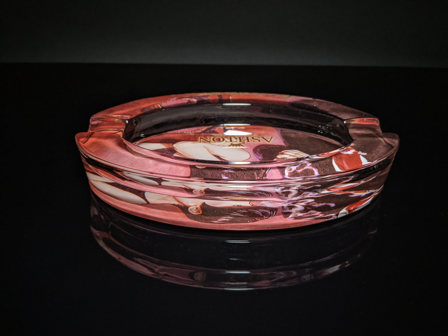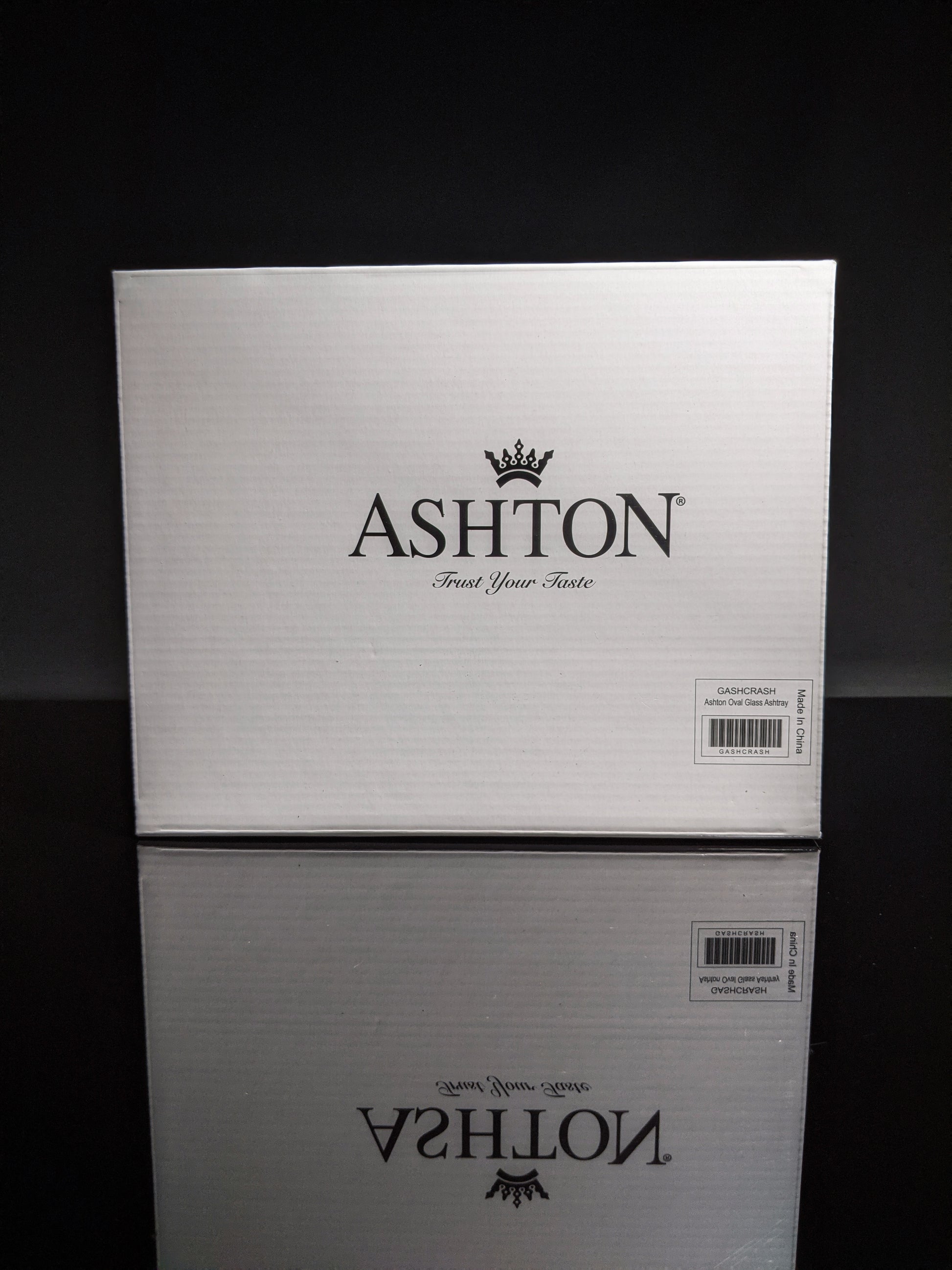 This is a new Ashton Glass Ashtray. Comes in the original box. Measures 7.75" L x 5.25" W x 1.25" H. We ship insured.