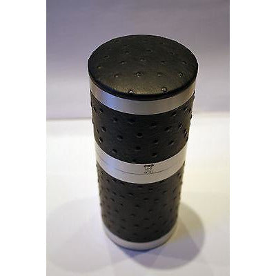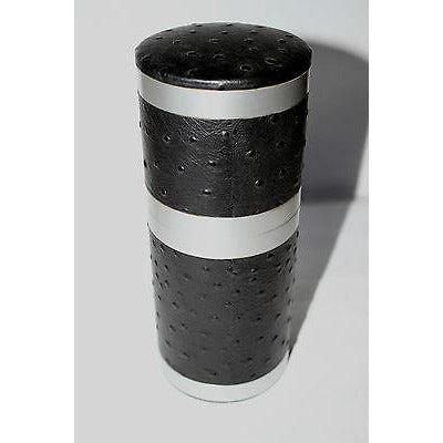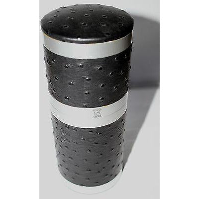 This is a brand new Atoll Desktop Humidor in Black Ostrich Leather without the original box. Measures outside approx : 8.5" L x 3.5" W. We ship Worldwide fully insured. Stock Photo is a black Lizard leather covered one.