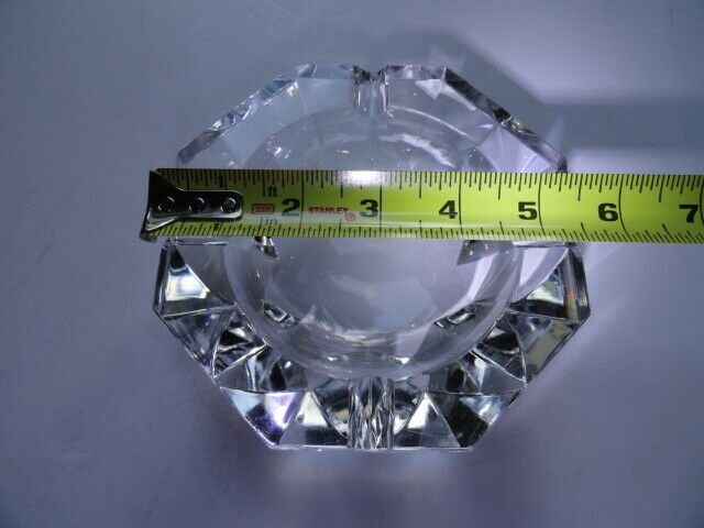 This is a preowned Baccarat Crystal Ashtray. Made in France. Measures 6" wide by 2" H. This Baccarat crystal ashtrays does have some scratches on bottom. And one flea bite on a slot. Comes without the original box . We ship Worldwide fully insured. Signature is required upon delivery.