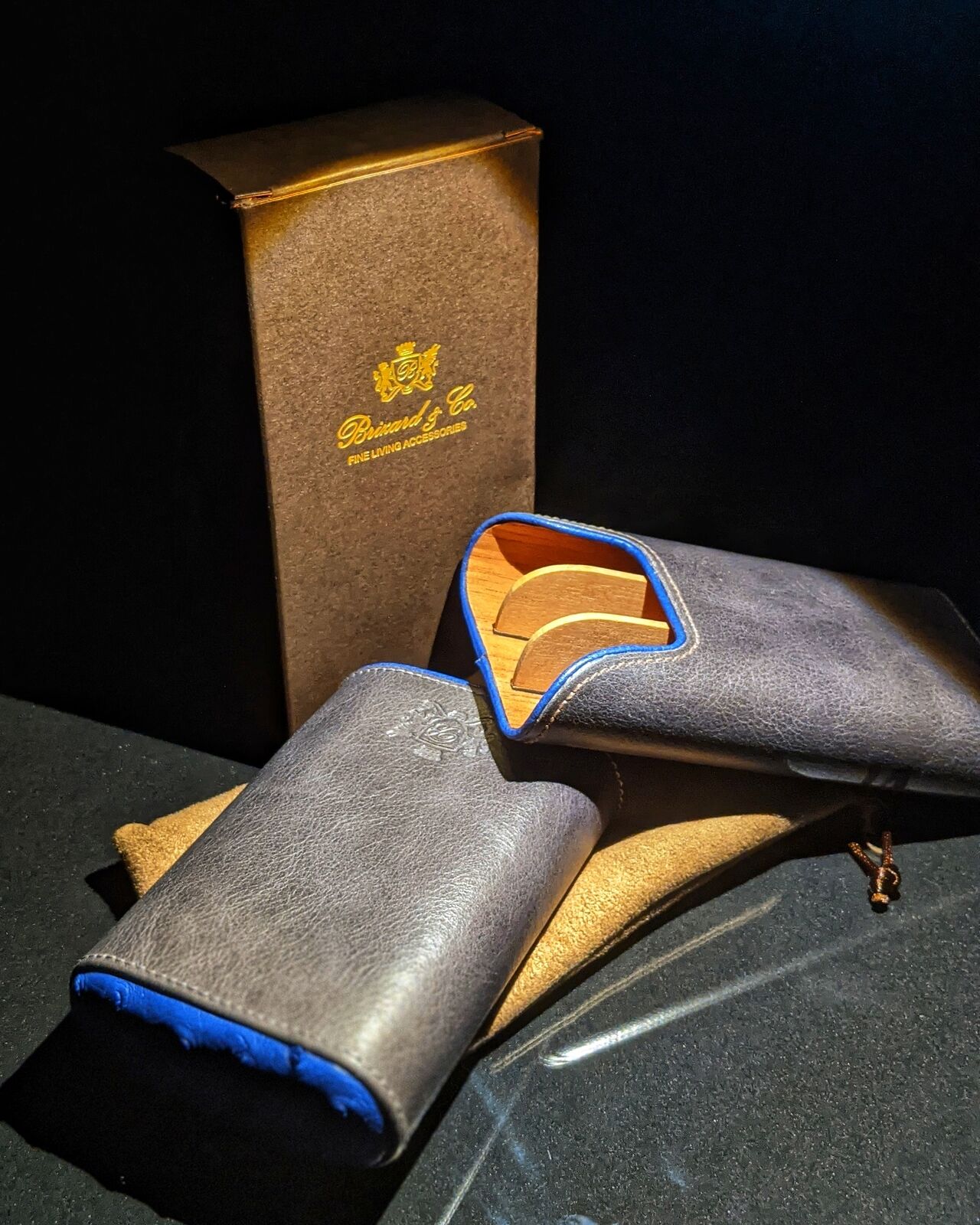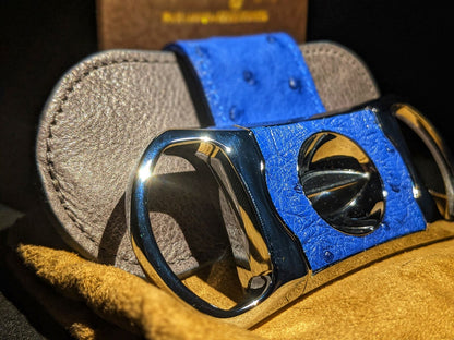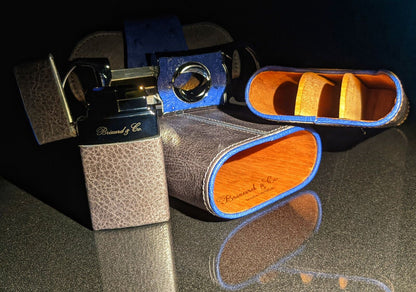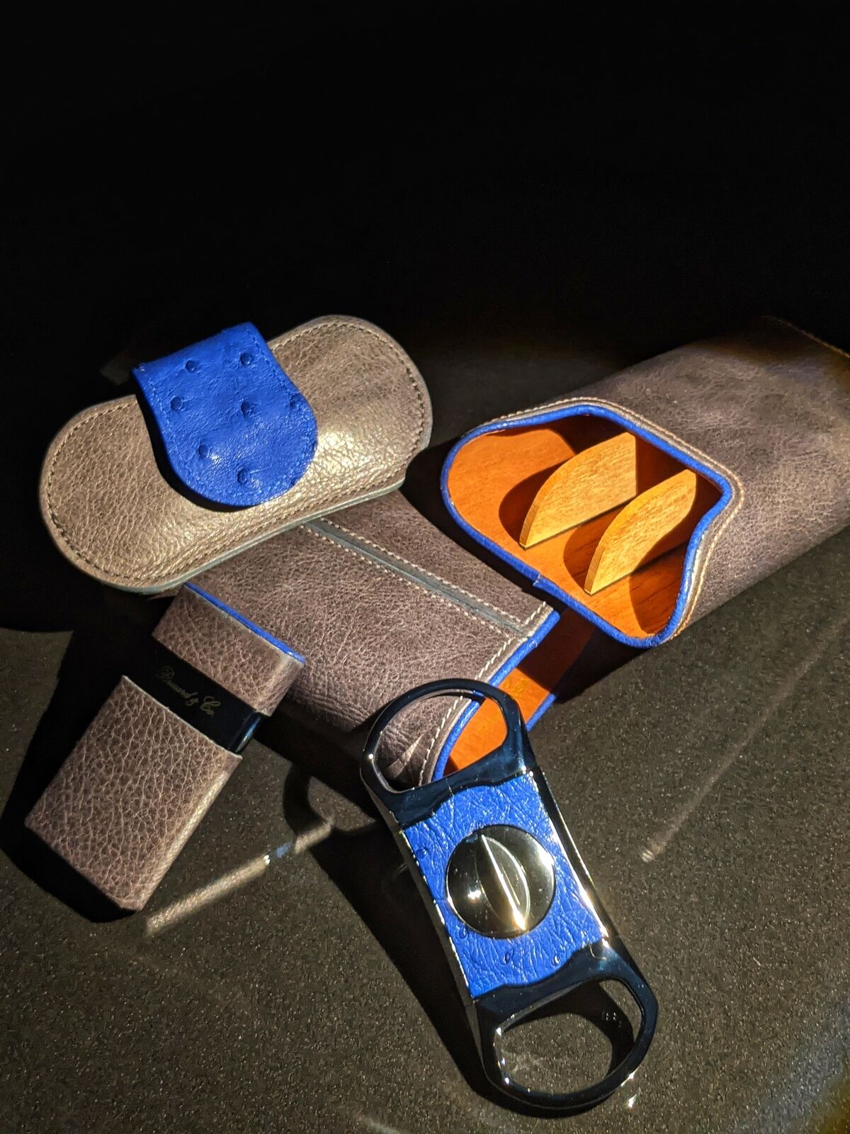 Brizard and Co Blue Ostrich and Grey Leather carrying case, cutter and lighter combo