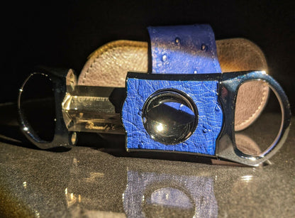 This is a new Brizard and Co Blue Ostrich and Grey Leather carrying case, cutter and lighter combo, Handmade in USA . New in there original boxes with suede pouches. We ship Worldwide fully insured. Signature required upon delivery.
