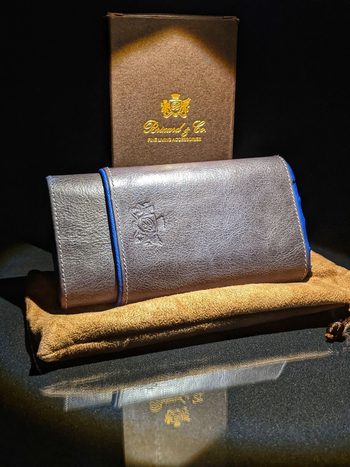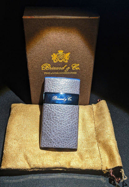 Brizard and Co Blue Ostrich and Grey Leather carrying case, cutter and lighter combo-NIB -Made in USA