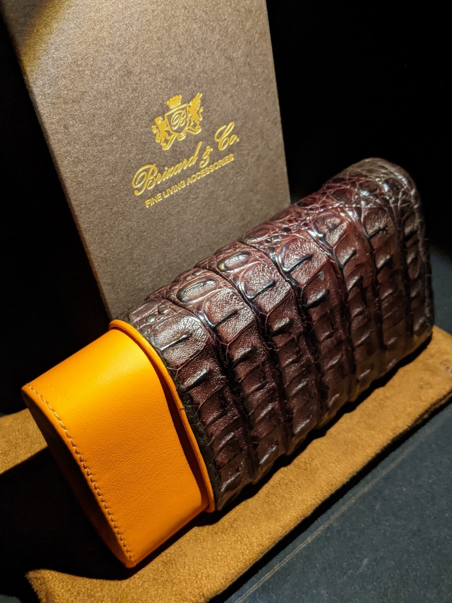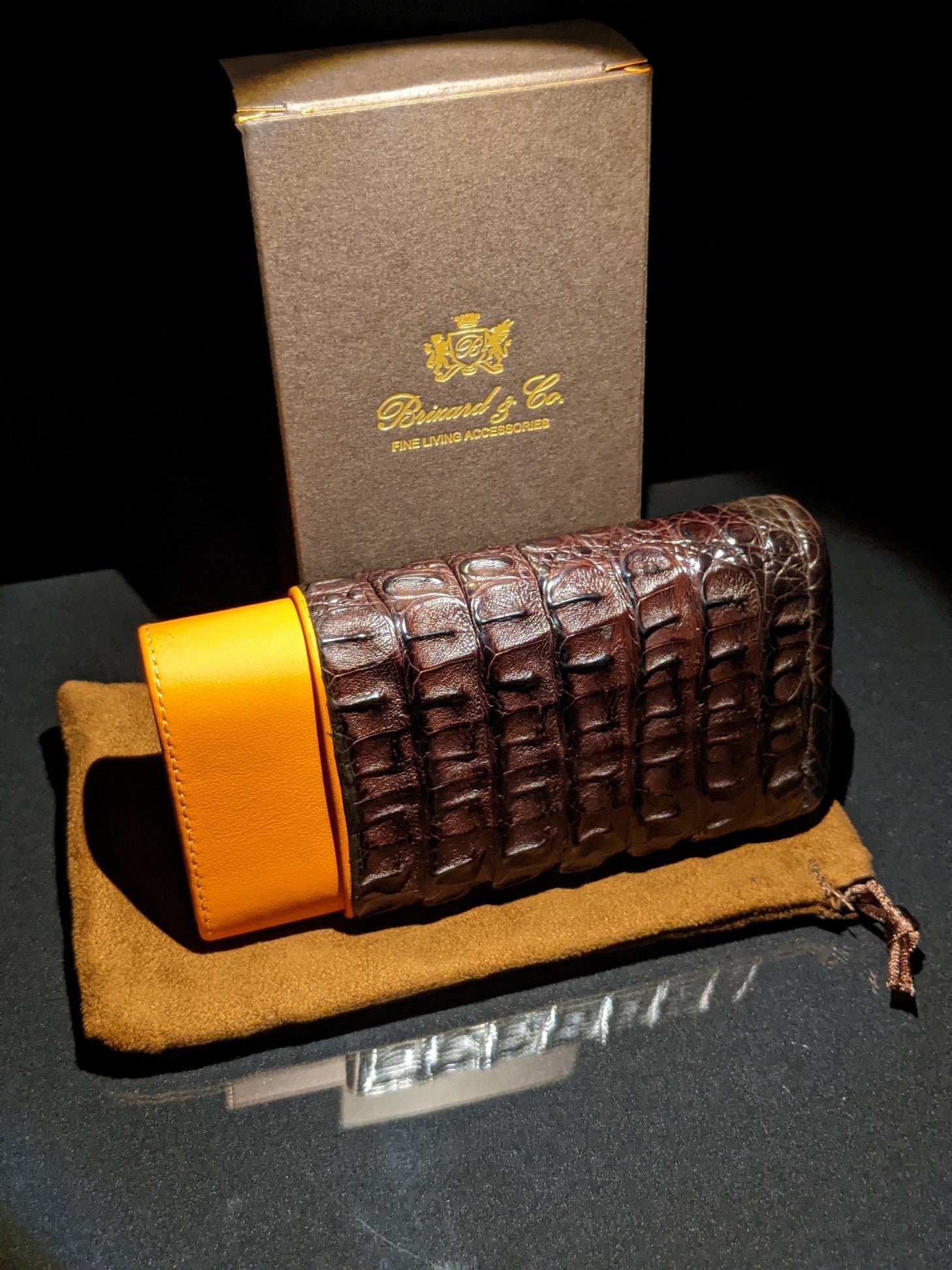 This is a new Brizard and Co Brown Caiman Showband cigar carrying case. NIB