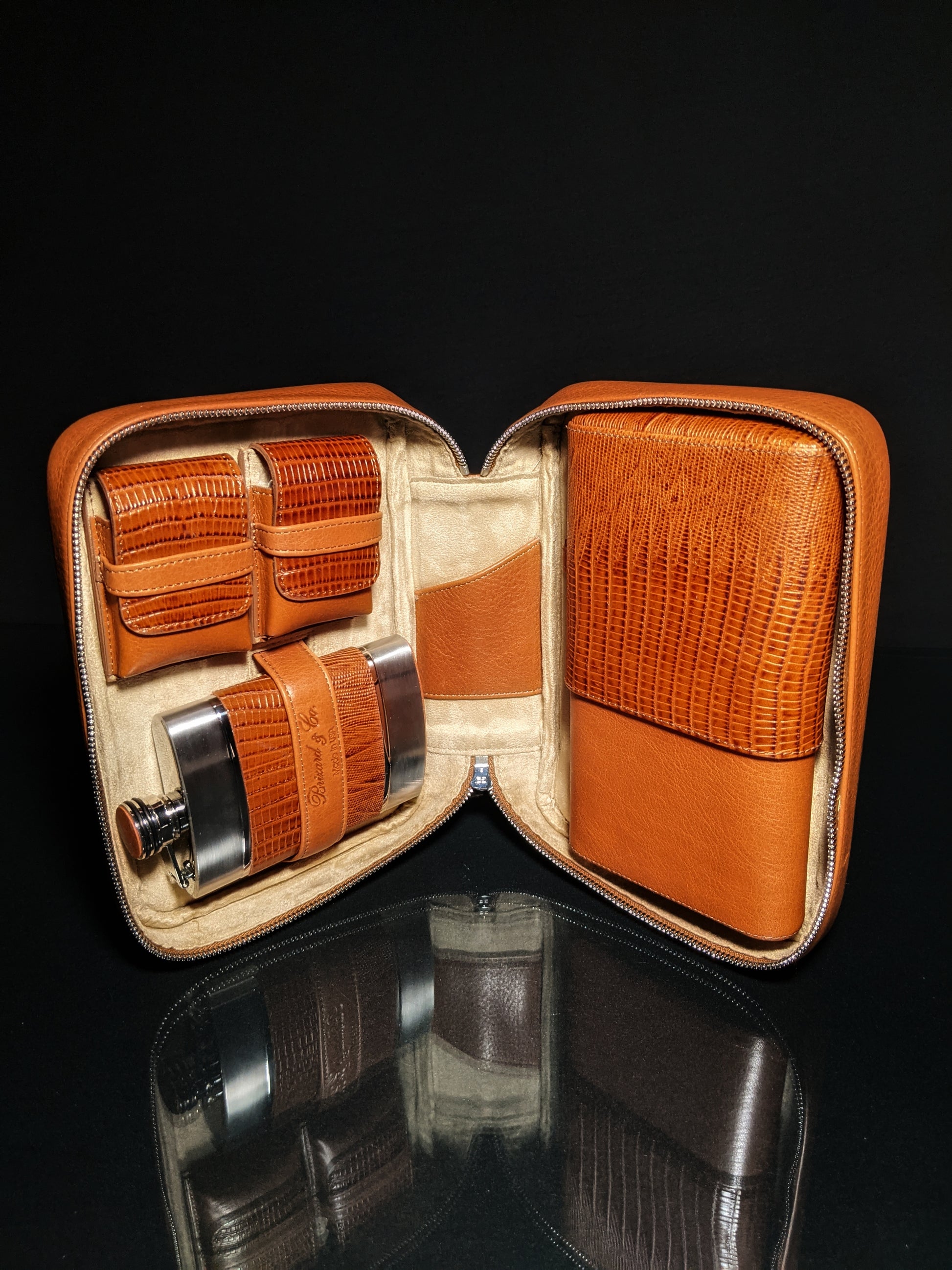 This is new Brizard and Co Brown Lizard Havana Traveler . Comes in the suede pouch . Made in the USA.