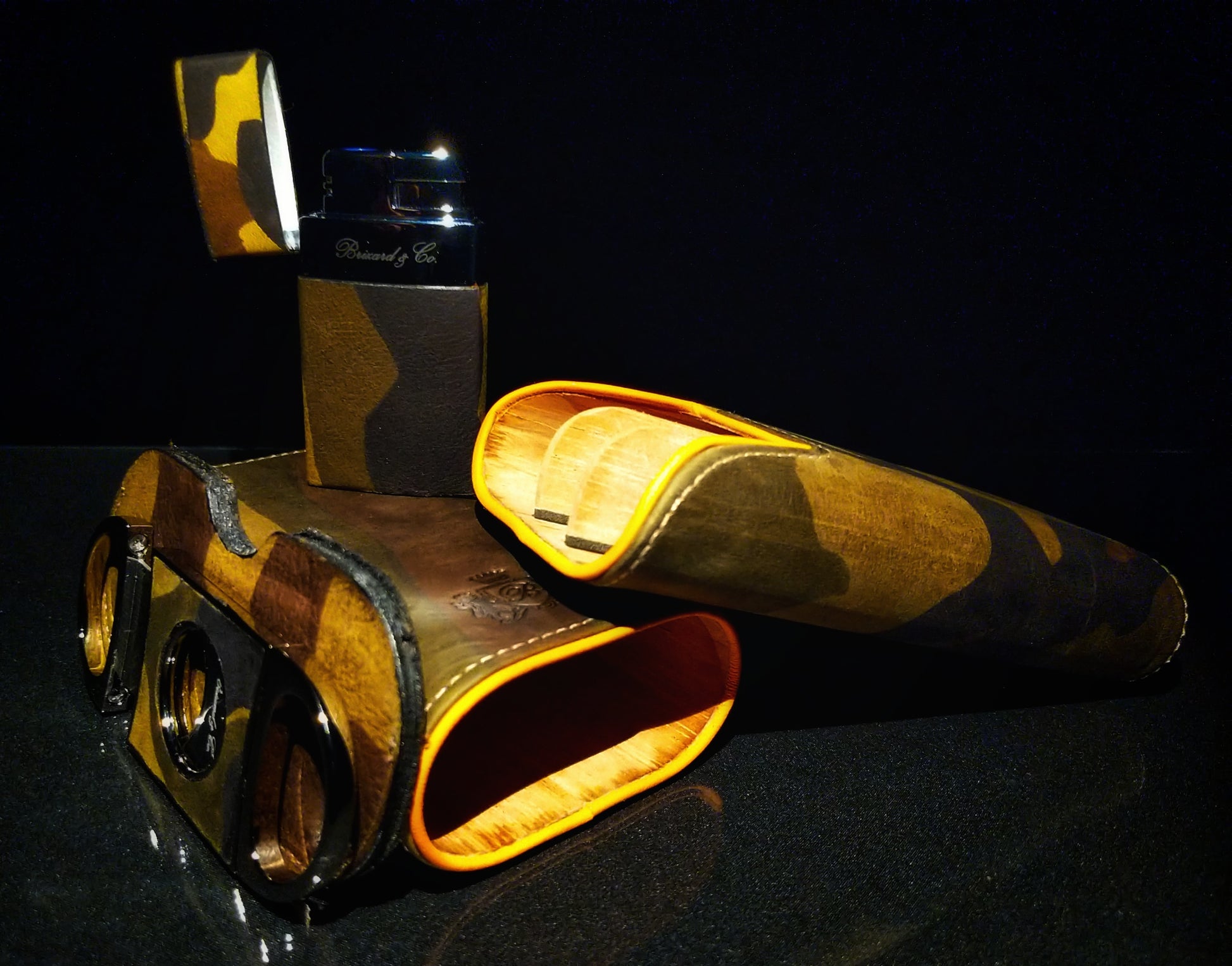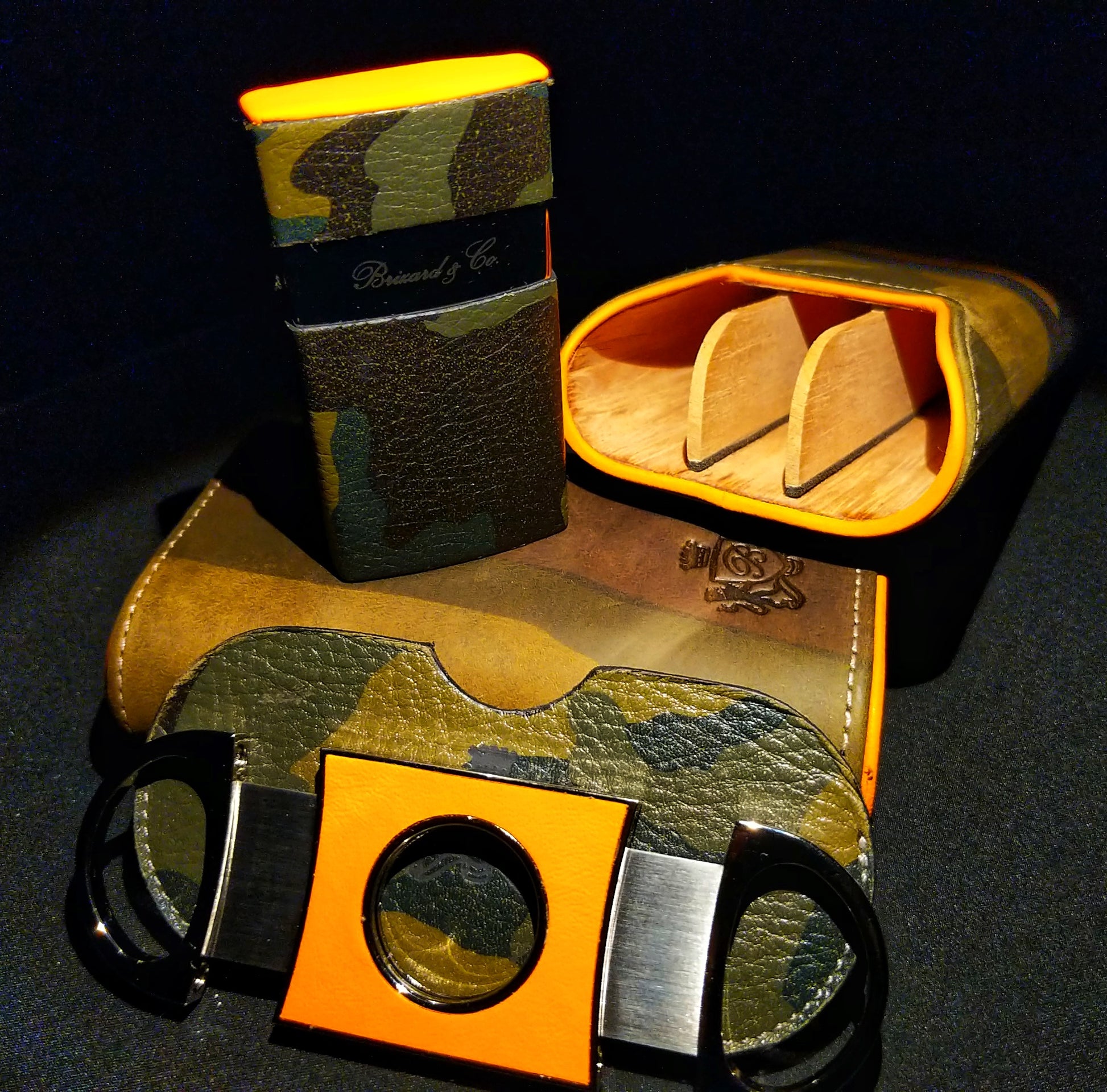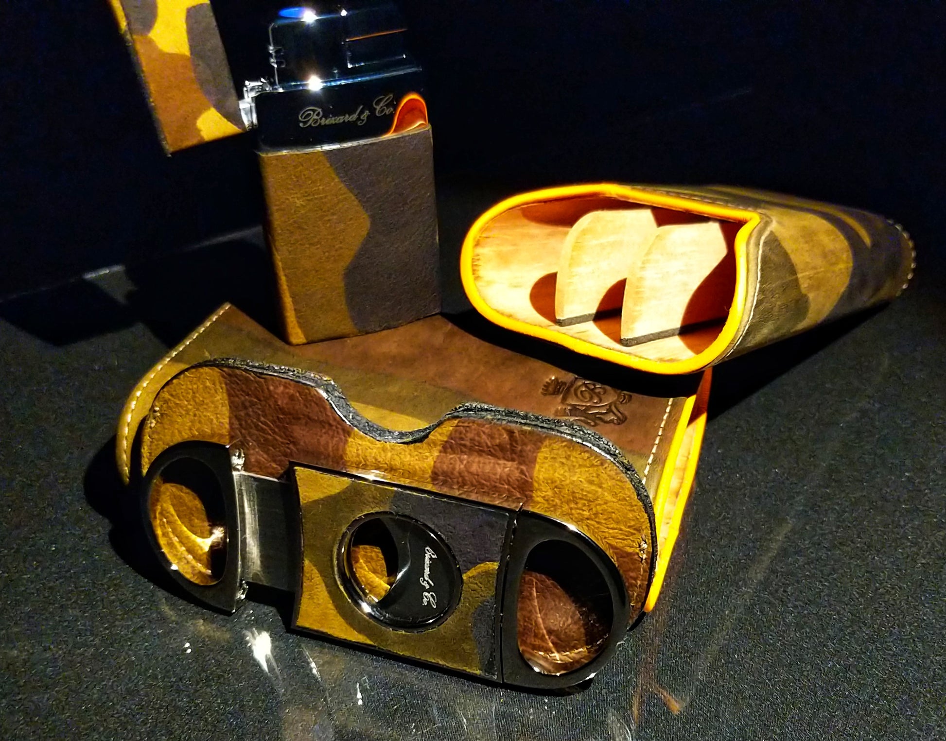 Brizard and Co Camouflage Cigar Case, Lighter and Cutter. Made in USA. We ship Worldwide fully insured. Signature is required upon delivery.