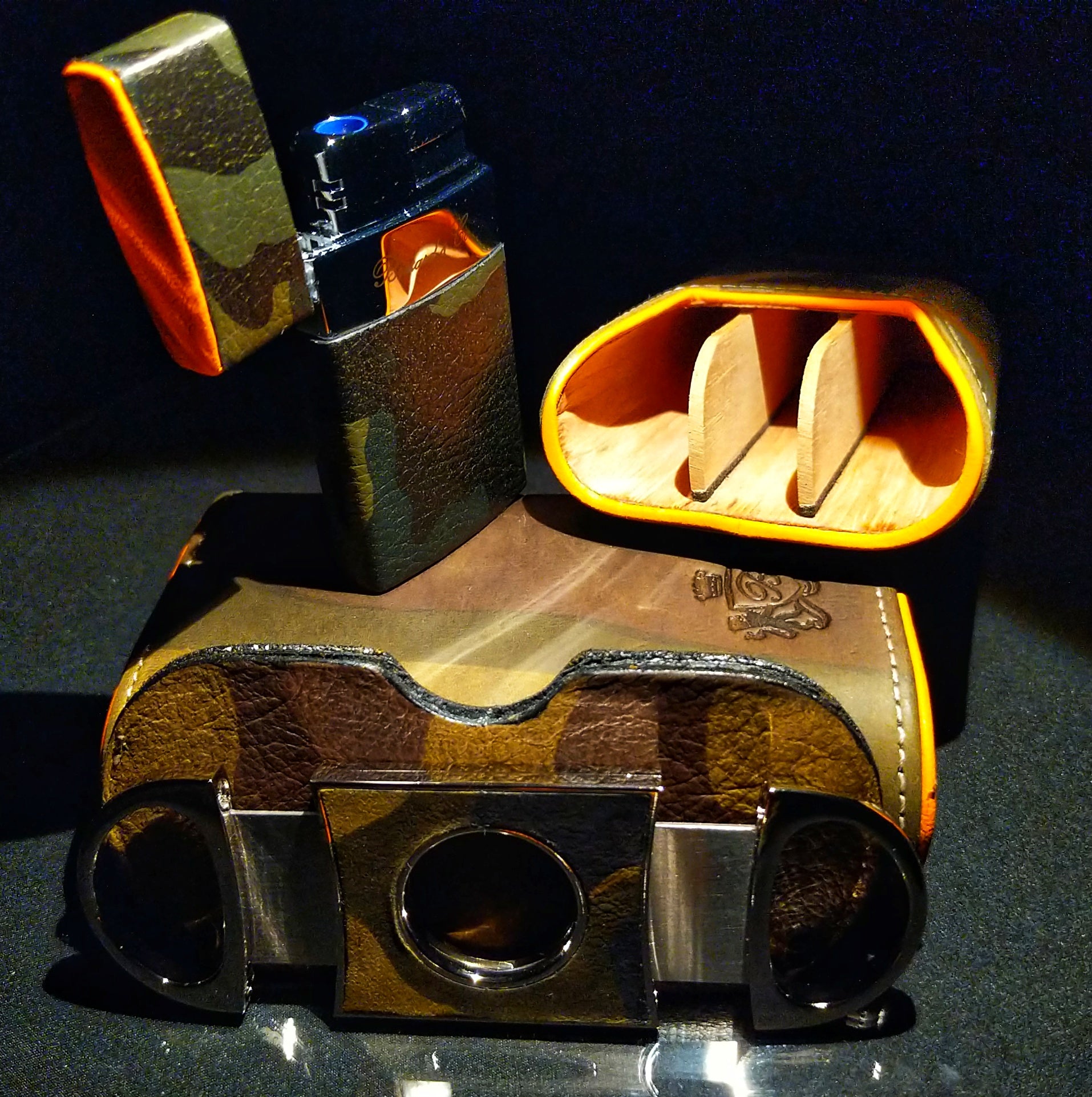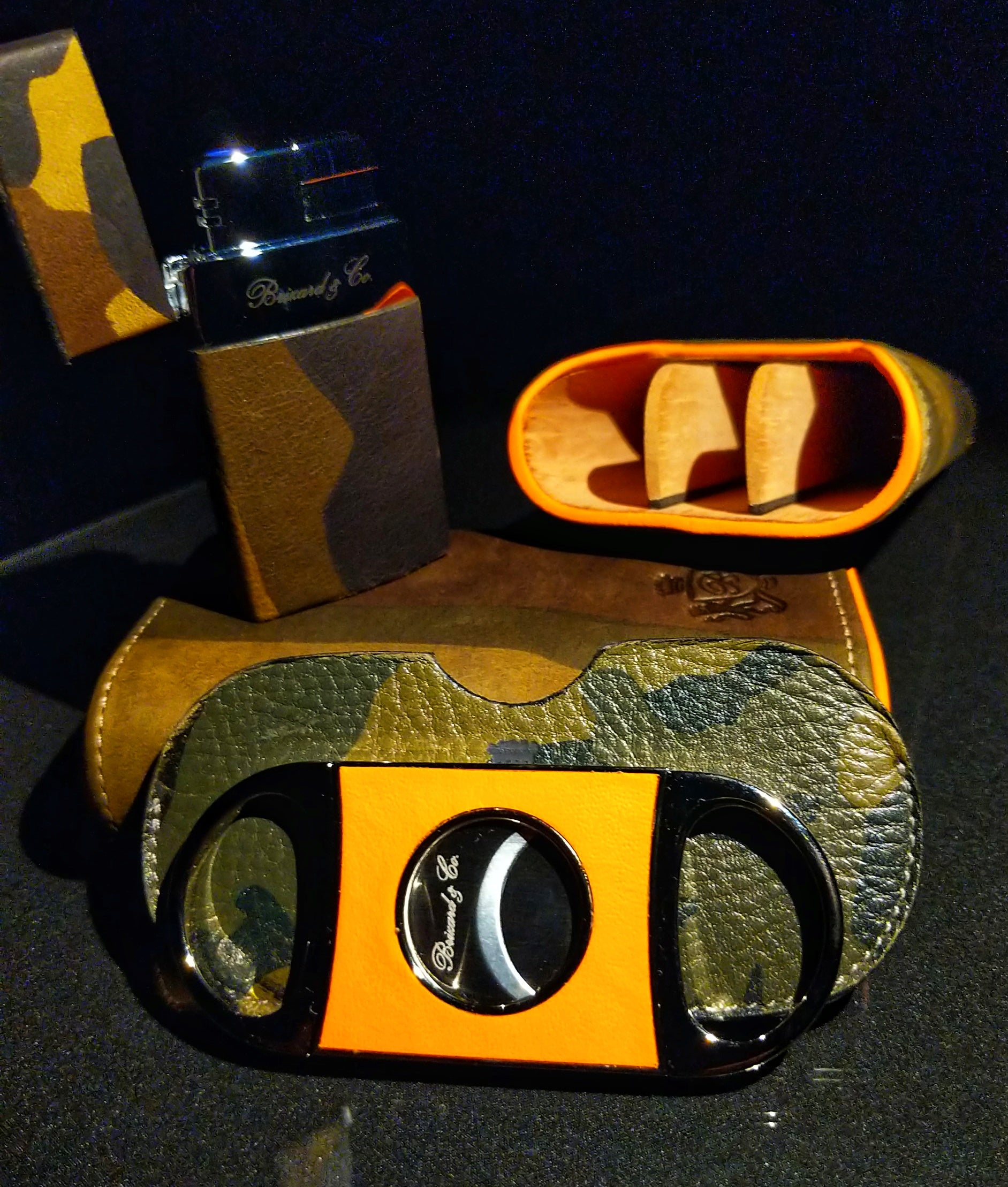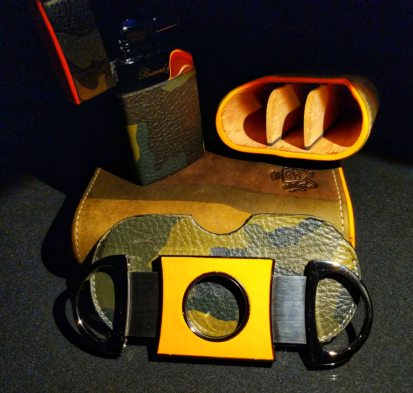Brizard and Co Camouflage Cigar Case, Lighter and Cutter. Made in USA. We ship Worldwide fully insured. Signature is required upon delivery.