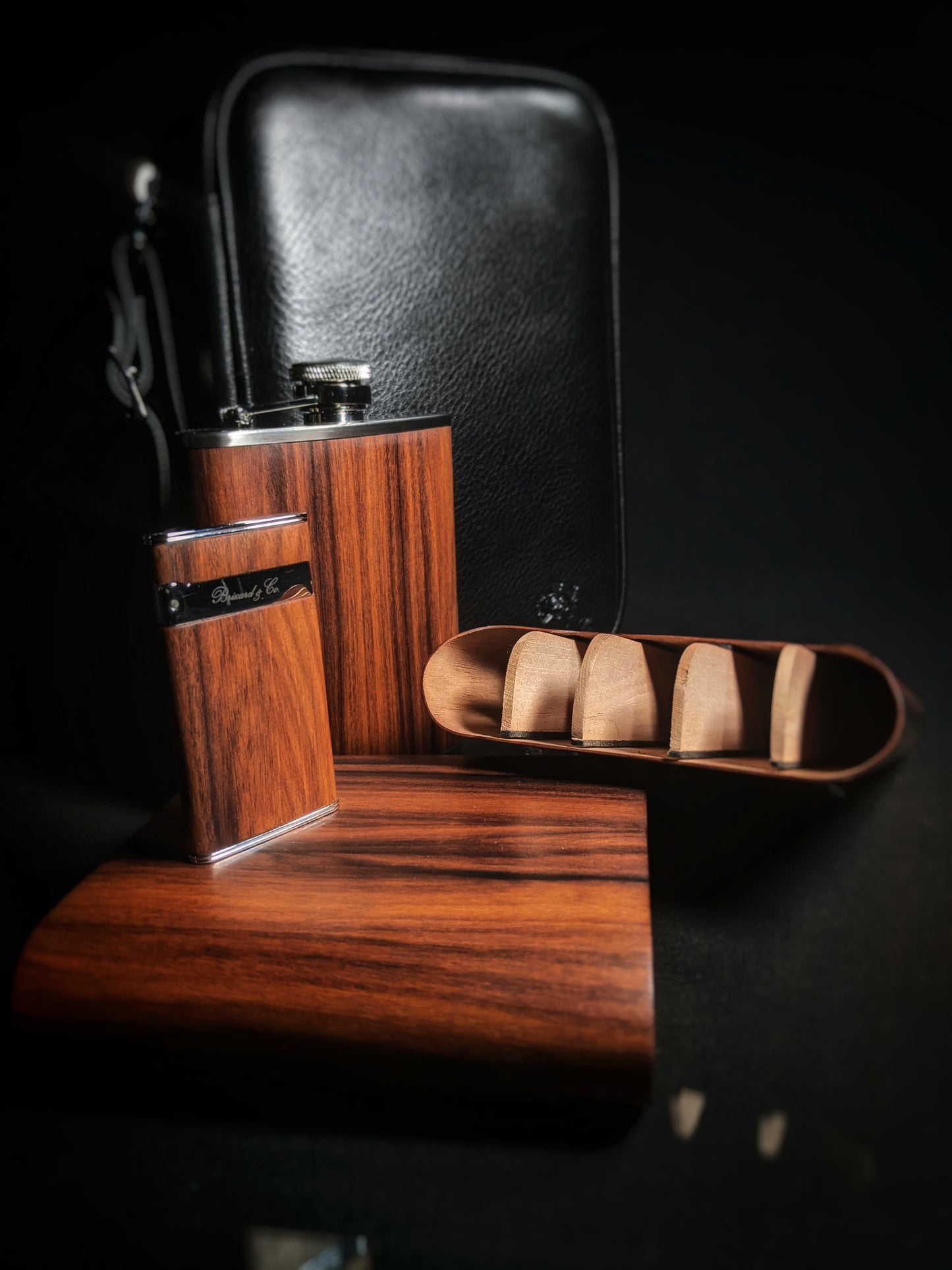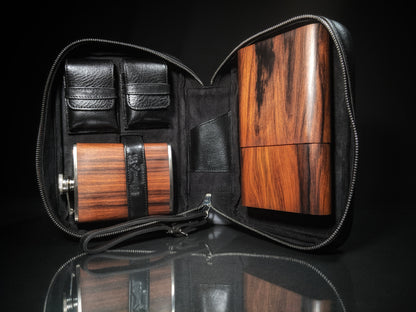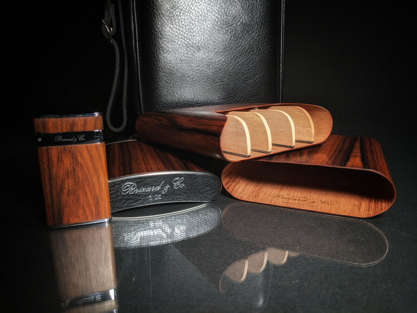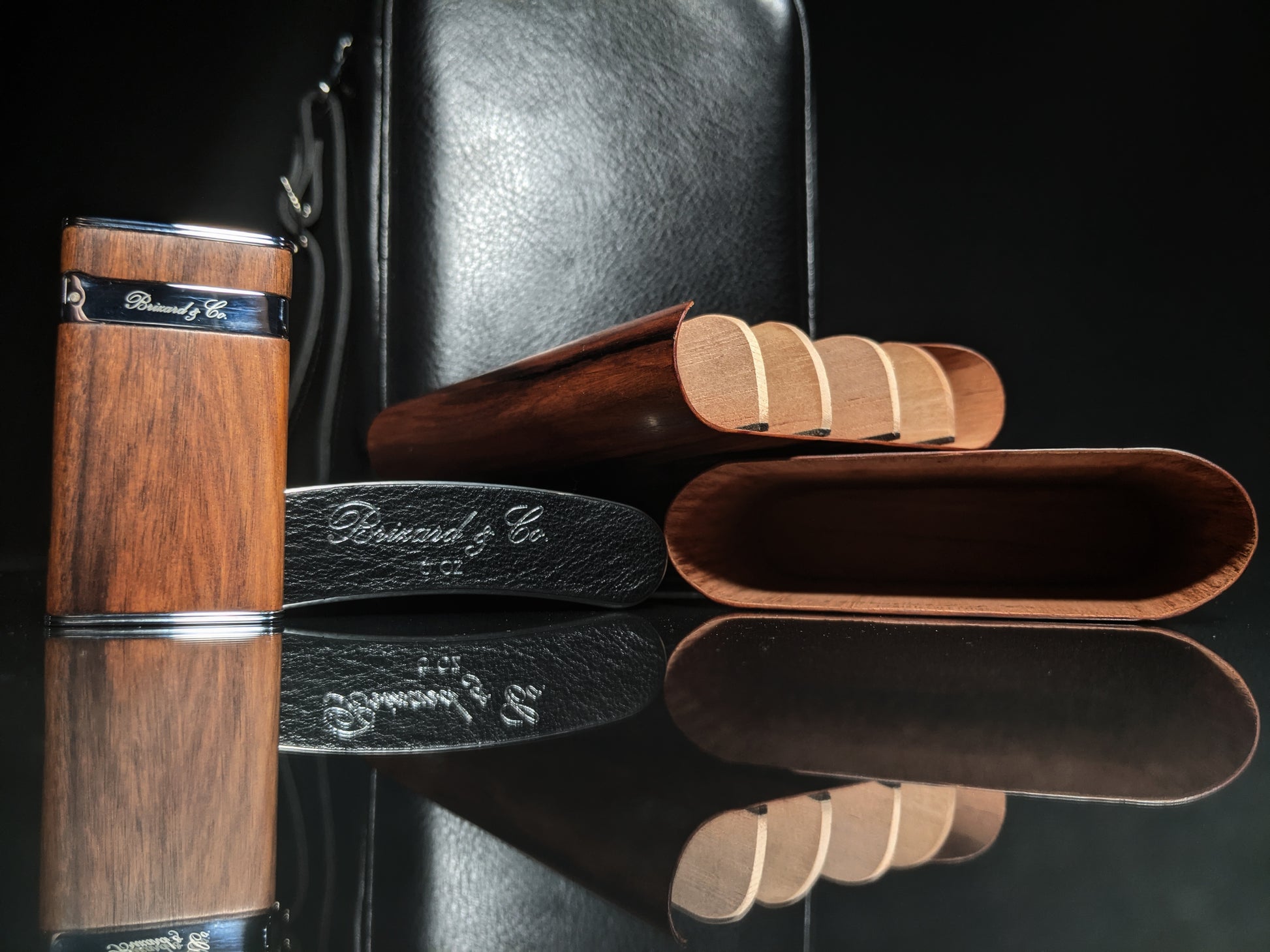 This is a new Brizard and Co Havana Black Leather and Exotic Wood Traveler. Made in USA. We ship worldwide fully insured. Signature is required upon delivery.