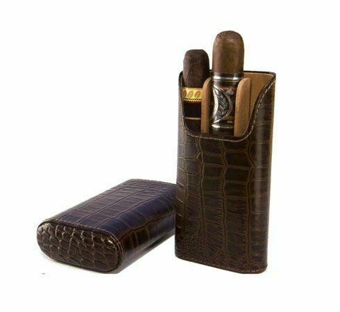 Bizard and Co. - The "Show Band" 3 Cigar Case - Croco Pattern Tobacco