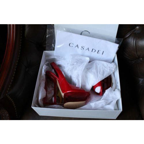 This is a brand new pair of Ladies Casadei Plexi-Wedge Slingback Sandals in Metallic Red. These where made in Italy and size 38. These have never been worn and come in the original Casadei box complete with felt cover. We Ship Worldwide fully insured. Signature is required.
