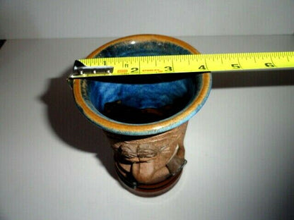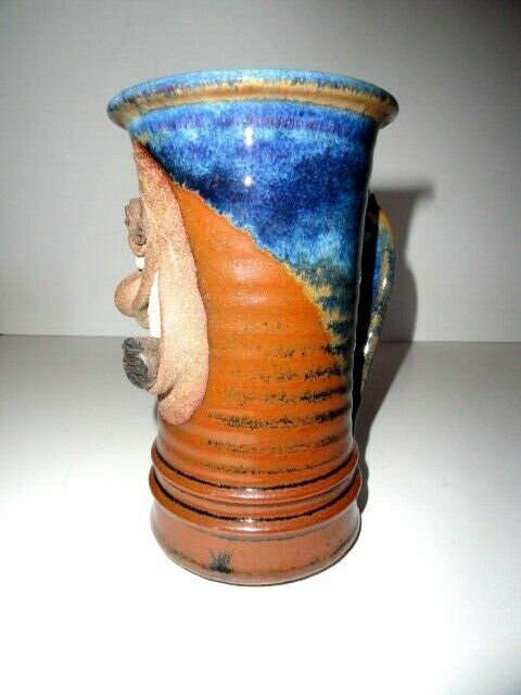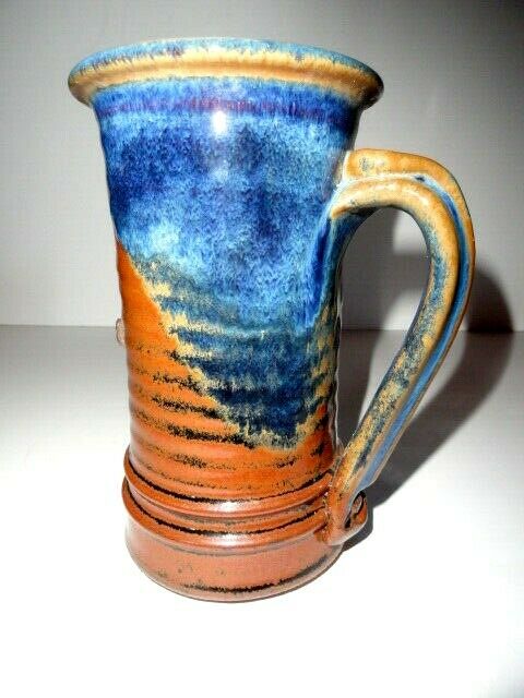 This is a handmade ceramic custom coffee mug. Made in USA. Stands 7' tall by 4" at rim. Never used. We ship worldwide fully insured.