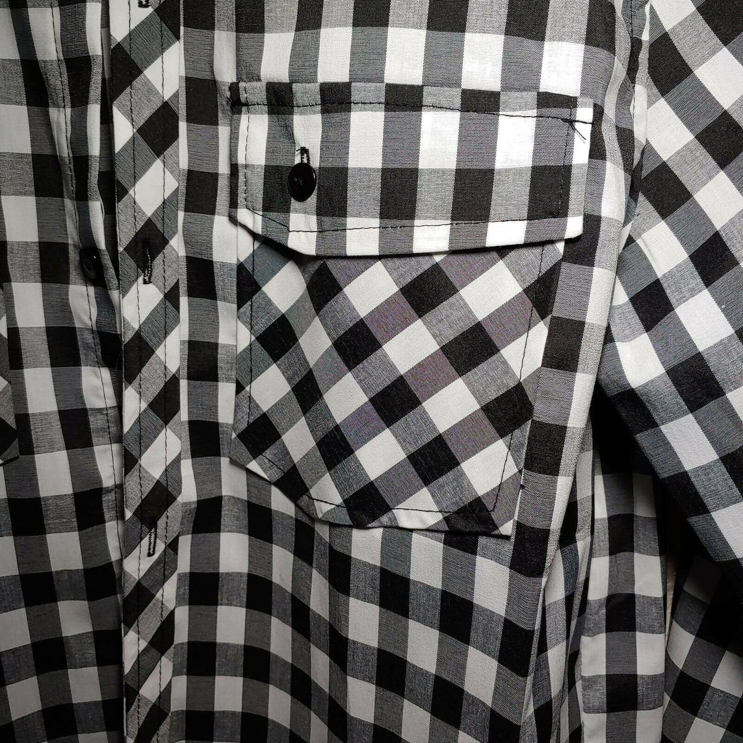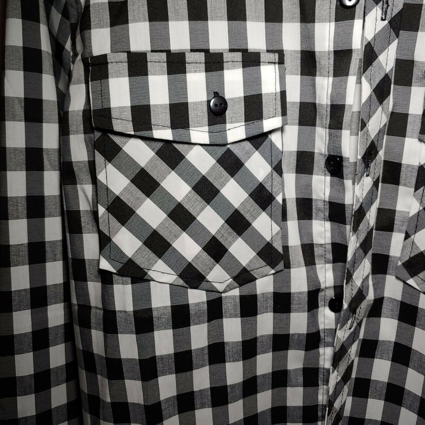 Checkered Black |Men's Large Button-Down Long Sleeve Shirt