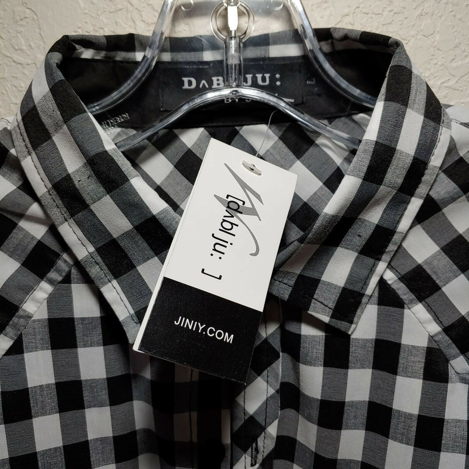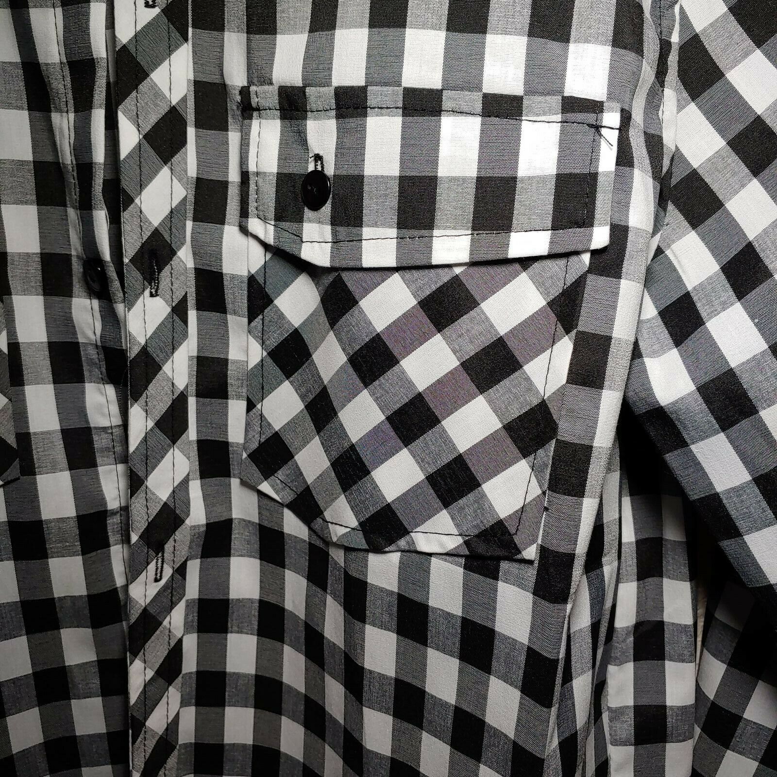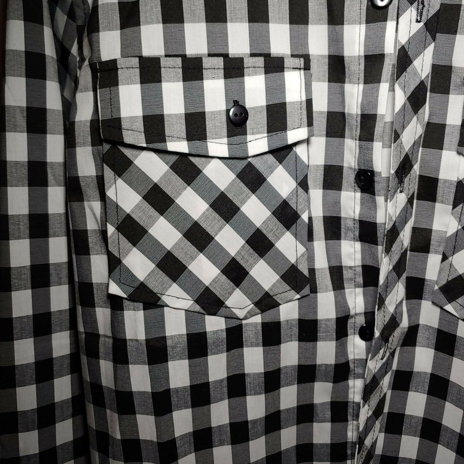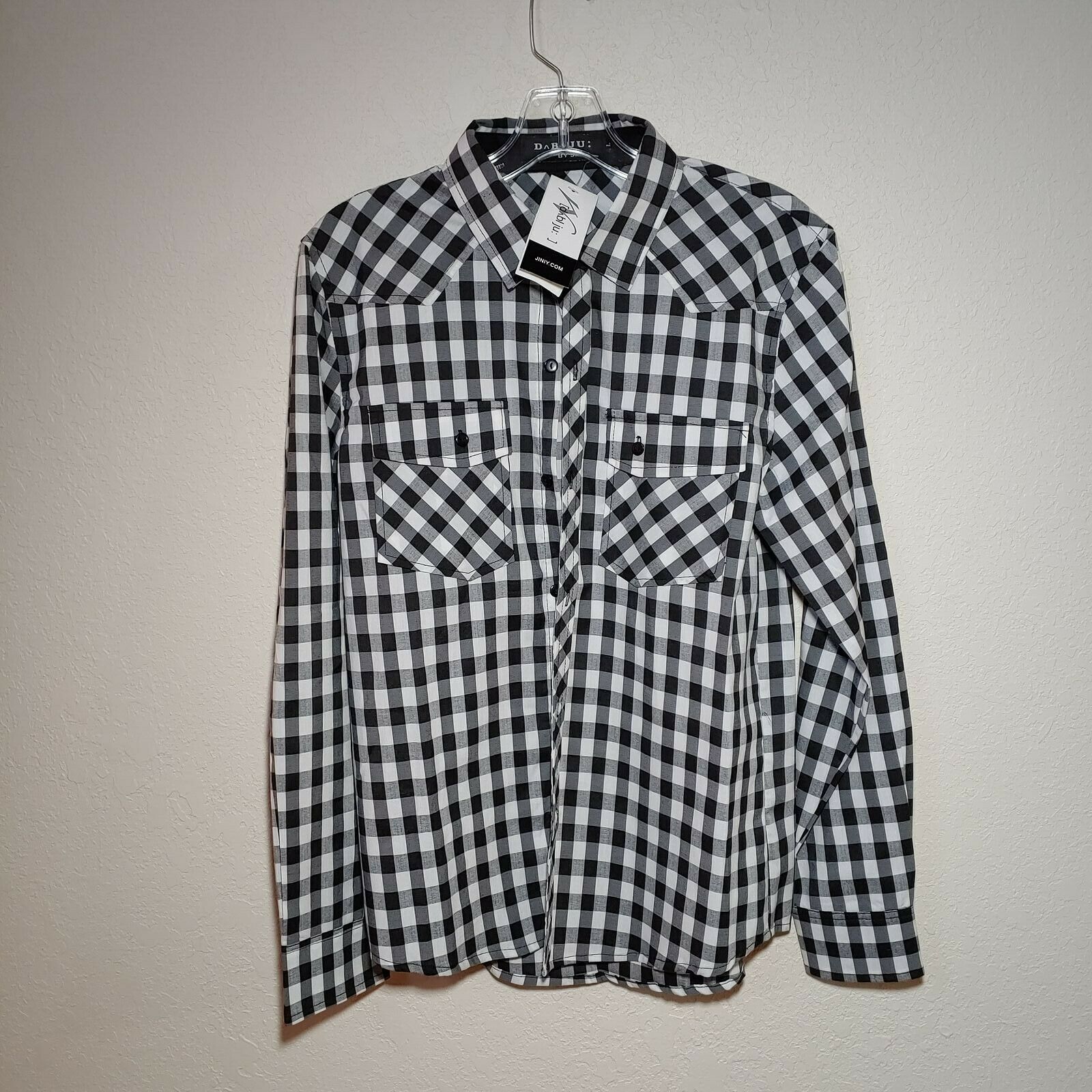 DaBLJU by Jiniy  Checkered Black Men's Large Button-Down Long sleeve Shirt