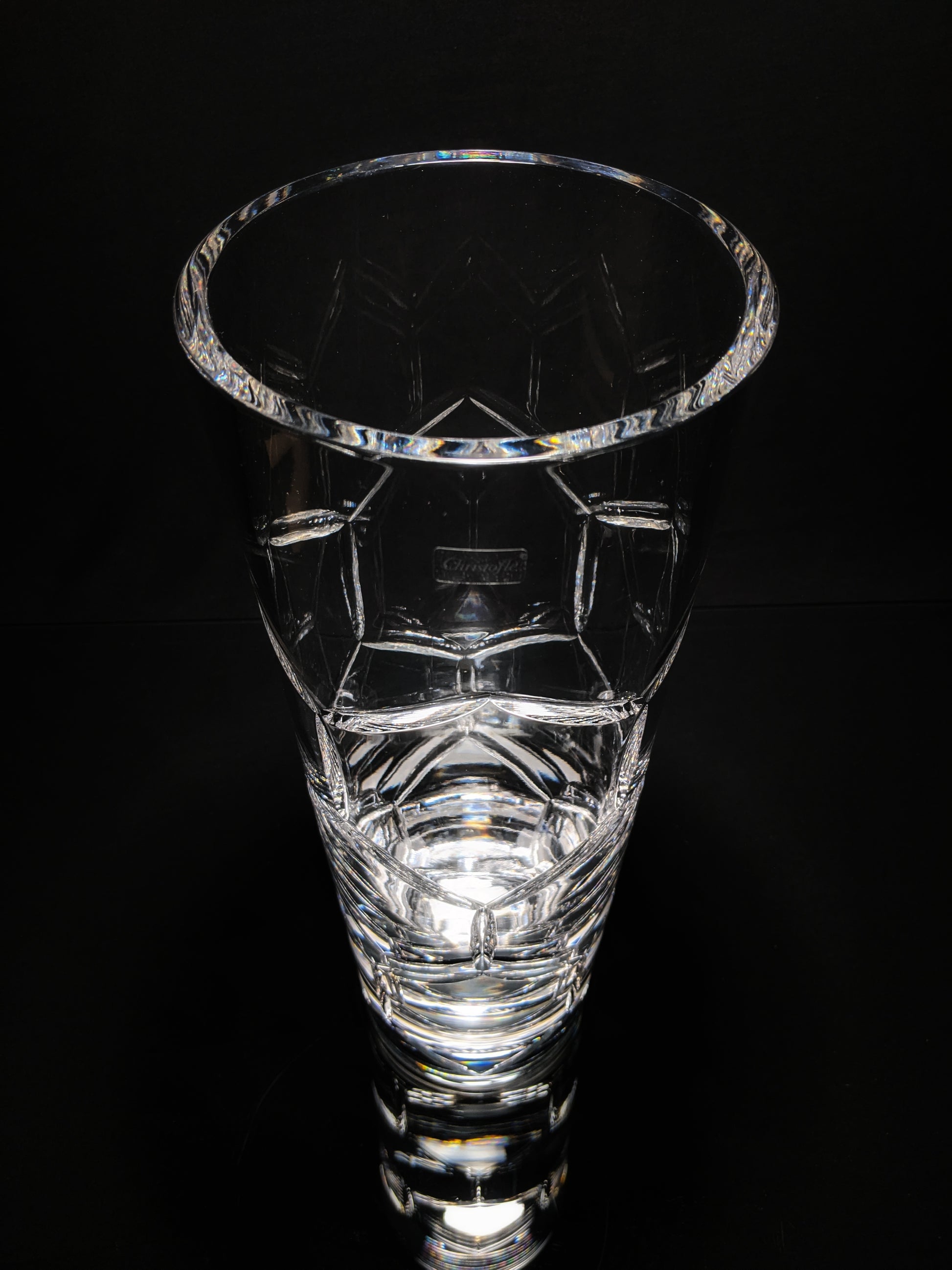 Christofle Madison Clear Crystal Tall Vase 16" H NIB