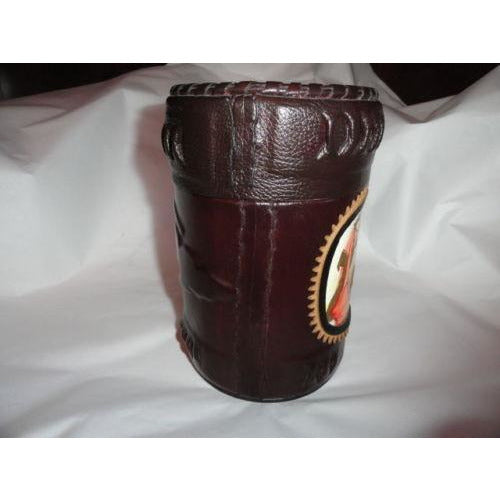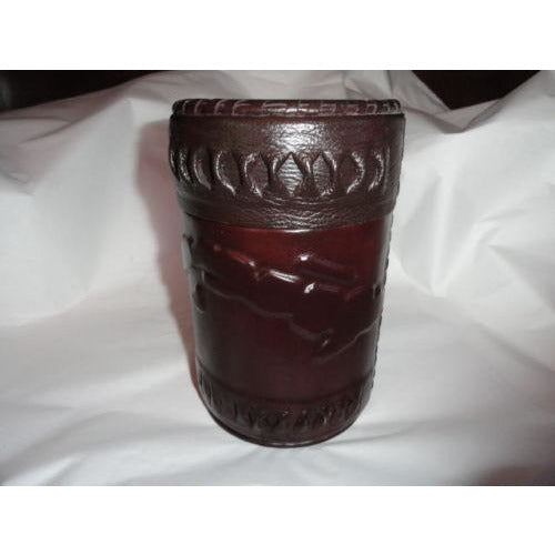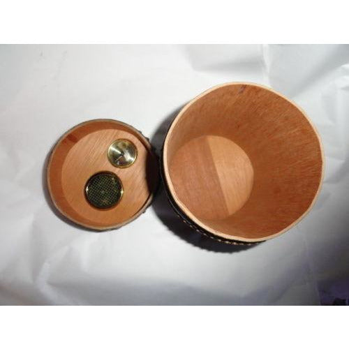 This is a pre-owned Leather covered cigar jar. Good overall condition . Top lid fits loosely ( not recommended for storing cigars ) Has some scratches on bottom only. Measures approx 9 " H with 6" D. We ship worldwide fully insured. Signature is required upon delivery. Thank you!