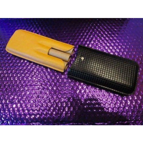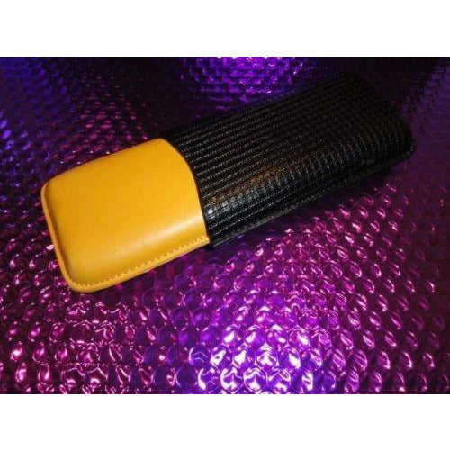 This is a new Black & Gold cigar carrying case. Measures approx : 7" L x 3.5" W closed. And up to 9.5" L x 3.5" W. Has a 7/8" opening for your favorite cigars. Adjustable for 3 Large size cigars. No cigars included. We ship Worldwide fully insured.