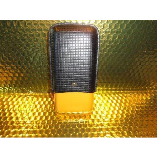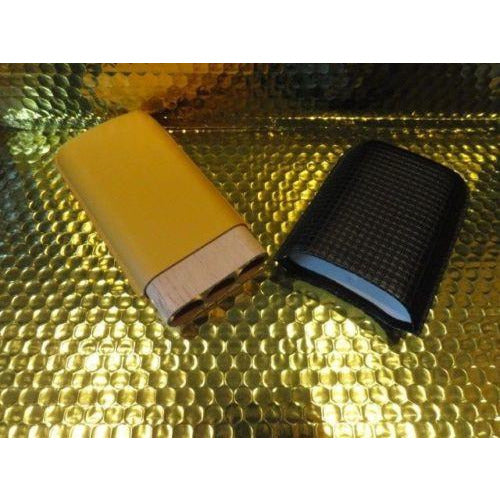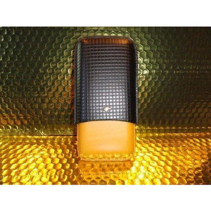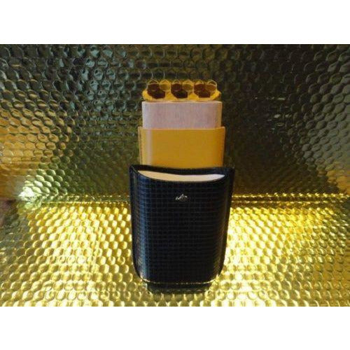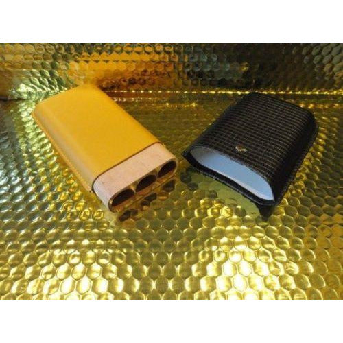This is a new Black & Gold Leather & wood cigar carrying case. Comes in the original box. Made for 3 Large size cigars. Inside holes are approx 7/8" diameter . The long wooden slots are approx 6" long . The top cover allows you to adjust to the proper length of your cigars. We ship Worldwide fully insured. Signature is required upon delivery. Thank you!