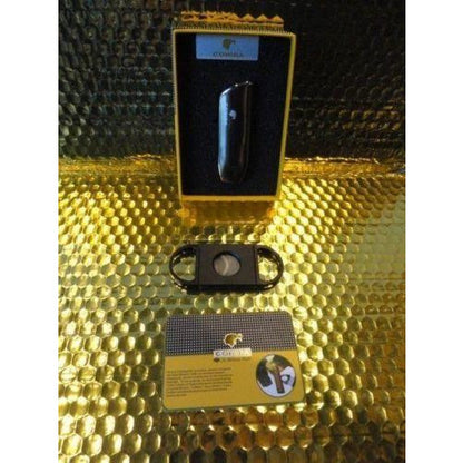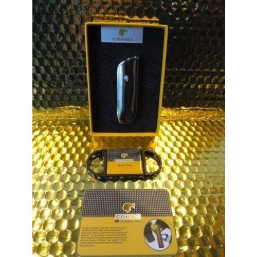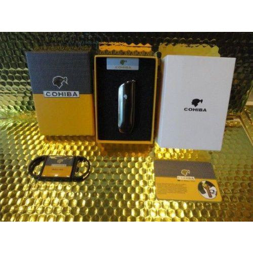 This is a new butane pocket lighter . And a plastic with stainless steel blade Cohiba logo cigar cutter. We ship Worldwide fully insured.