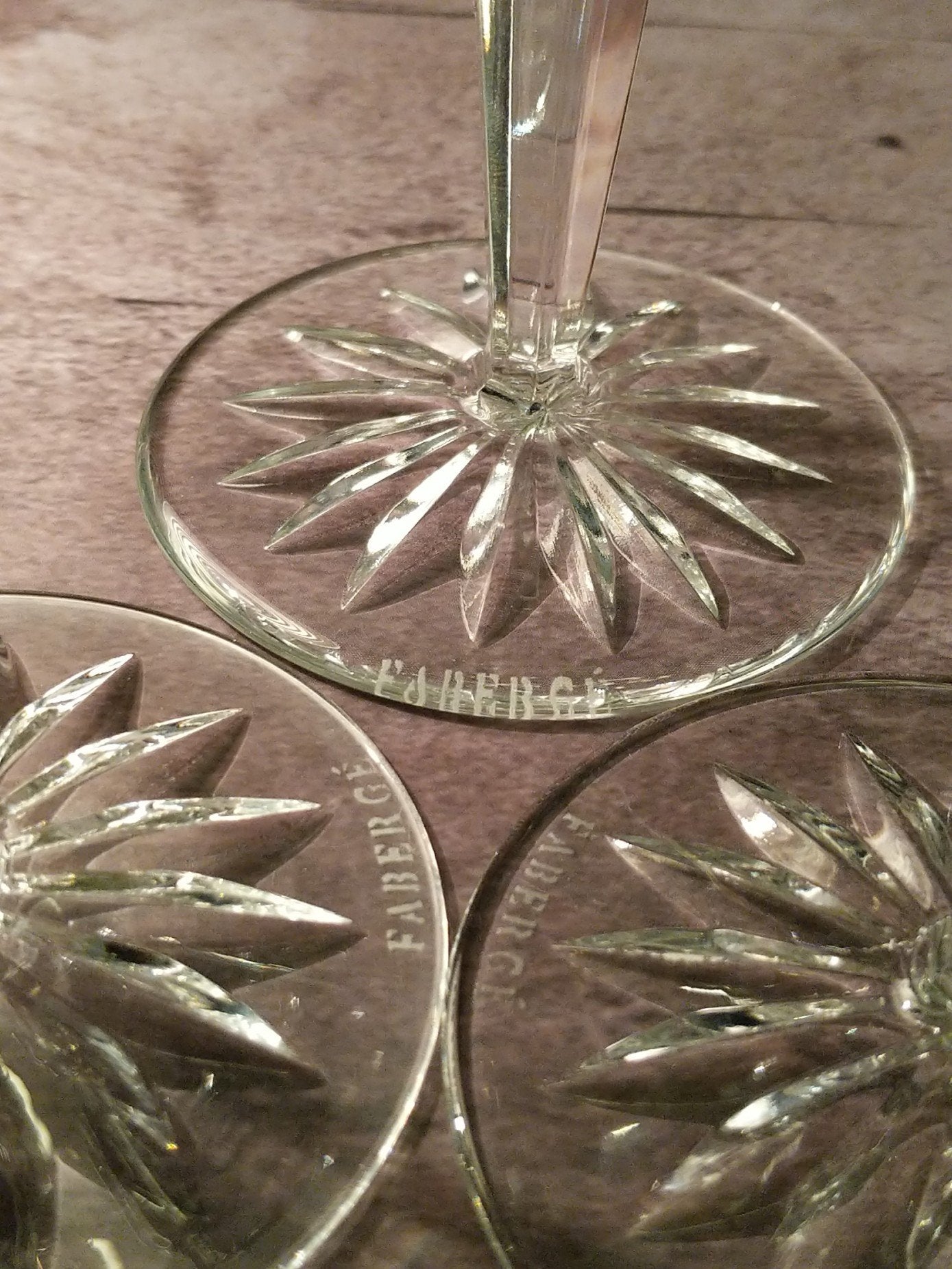 Faberge Regency crystal emerald green colored flute. Made in Slovenia. Comes without the original box . We ship worldwide fully insured. Signature is required upon delivery