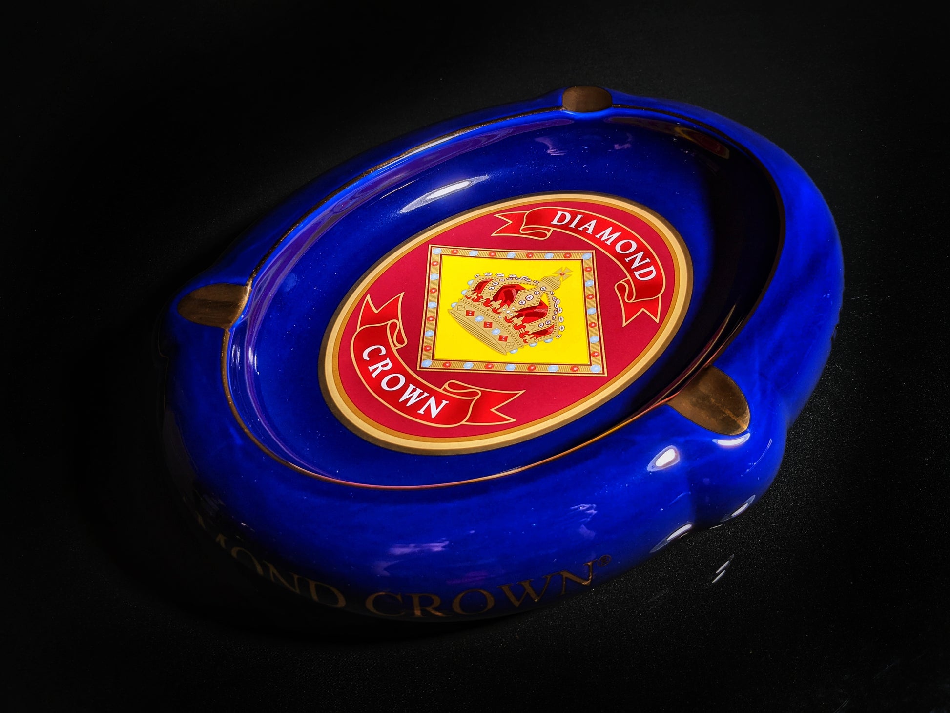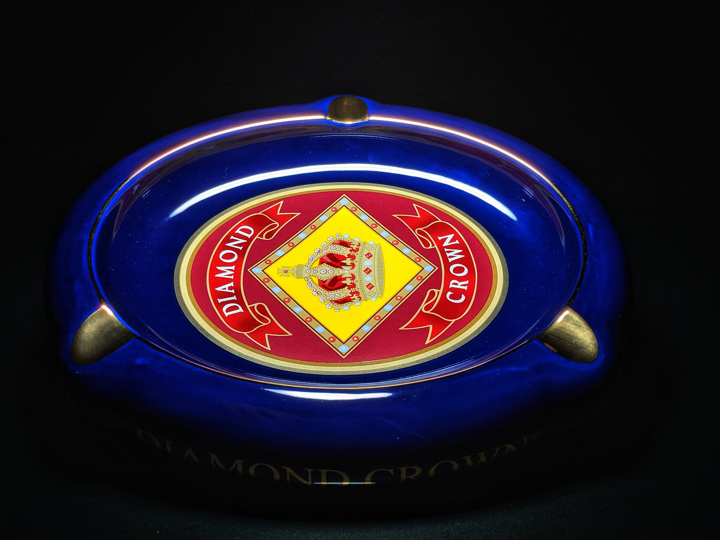 This Diamond Crown oval-shaped ceramic cigar ashtray is great to use in or outdoors takes up to three any size cigars.