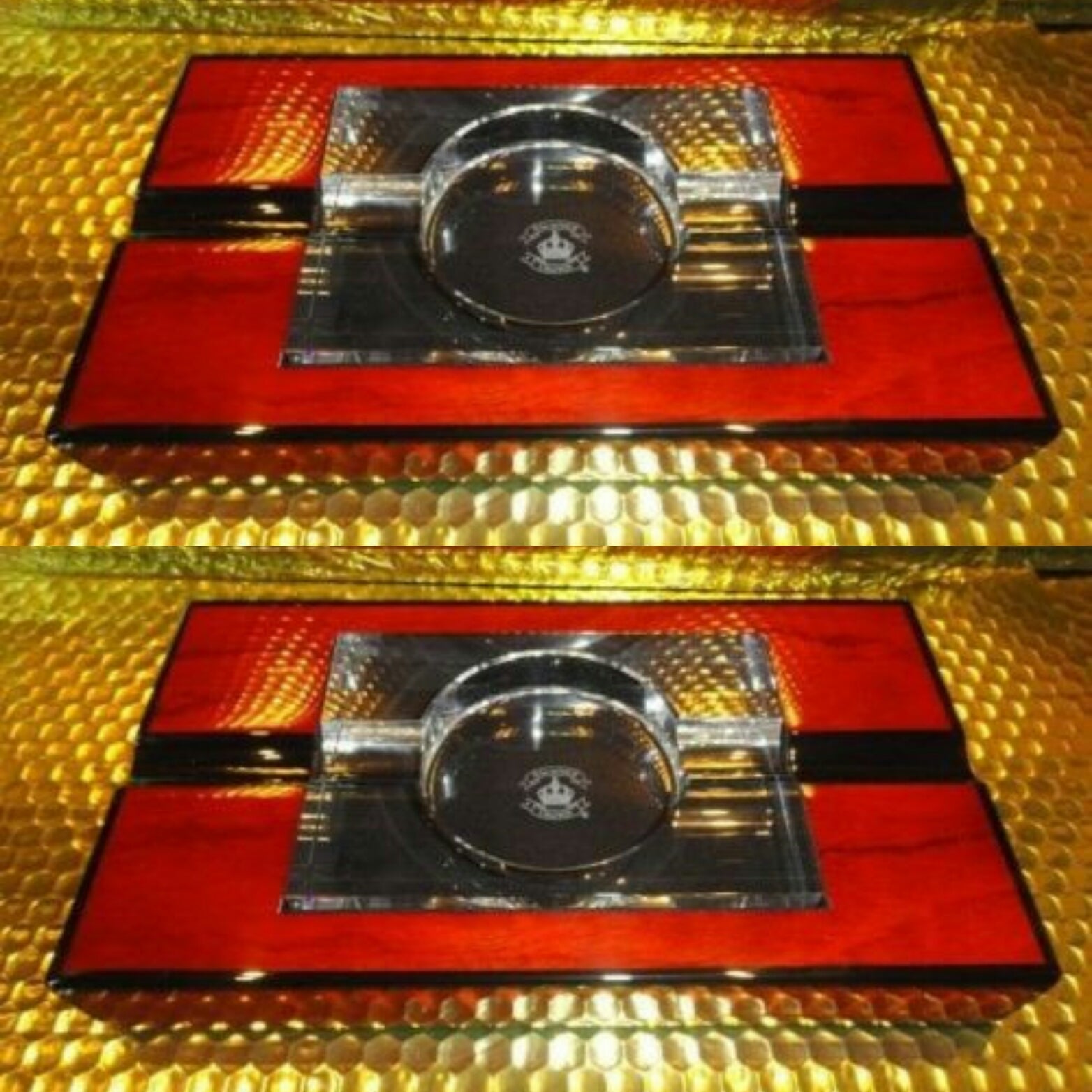 The silver Diamond Crown logo stamped into the felt liner can be seen through the bottom of the dish. You and your friend can hoist your cigars on this dignified ashtray as it holds up to two cigars on its wide lips. When friends and family see how thick and hefty both the wood and crystal are, they instantly know this is a plush ashtray.