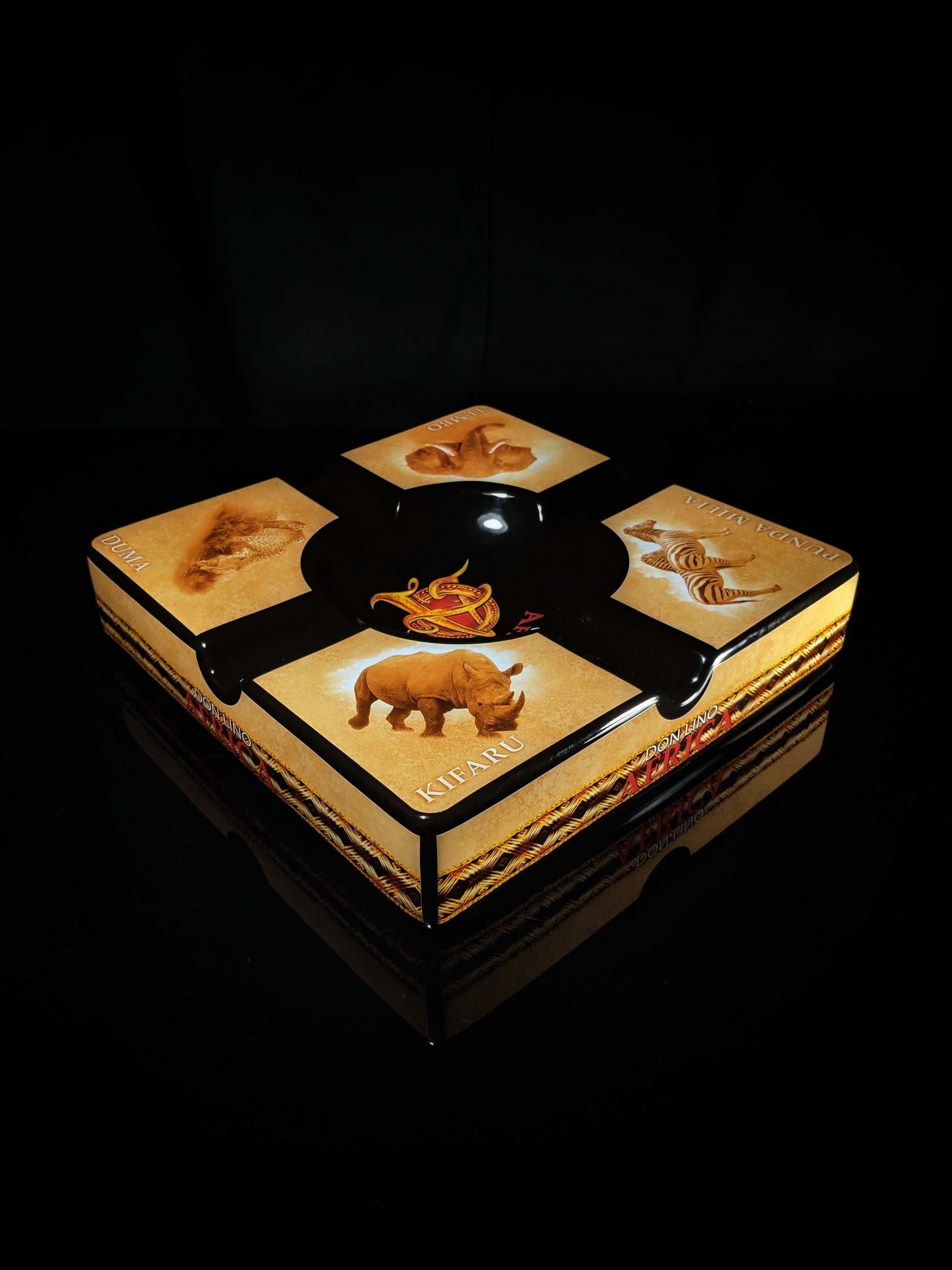 This is a new Don Lino Africa ceramic cigar ashtray. New without the box. Multi-colored. Has rubber tabs on bottom to protect counter tops. Item # CEO7292 Made in China. We Ship Worldwide fully insured.