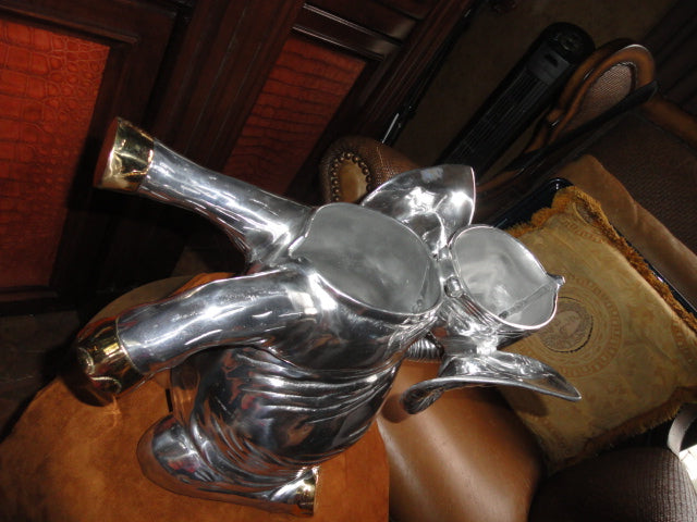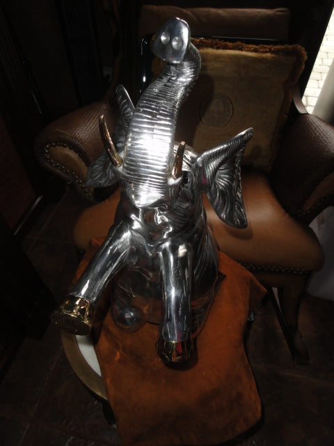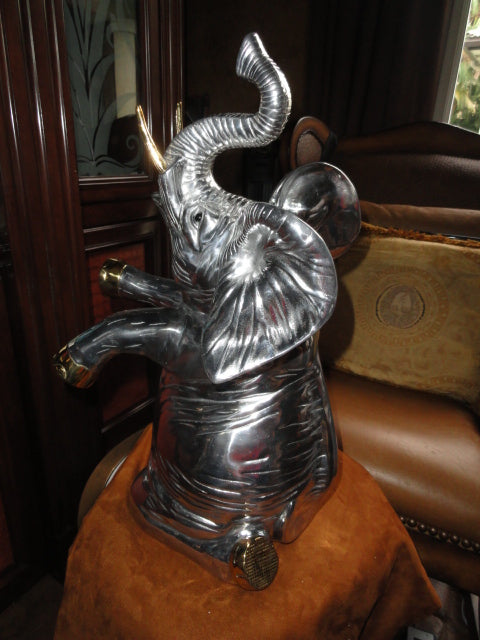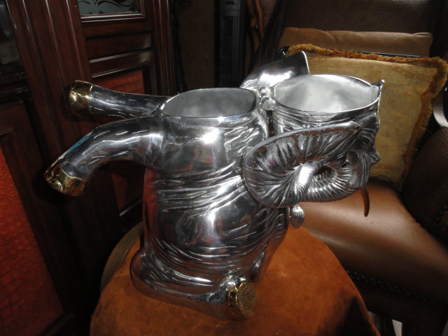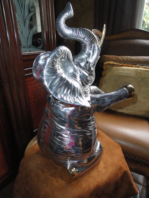 This is a new Elephant Champagne Ice Bucket. Made by Arthur Court in Aluminum. Measures 27" H x 11" W x 13" D. Comes without the original box. We ship insured with signature required.